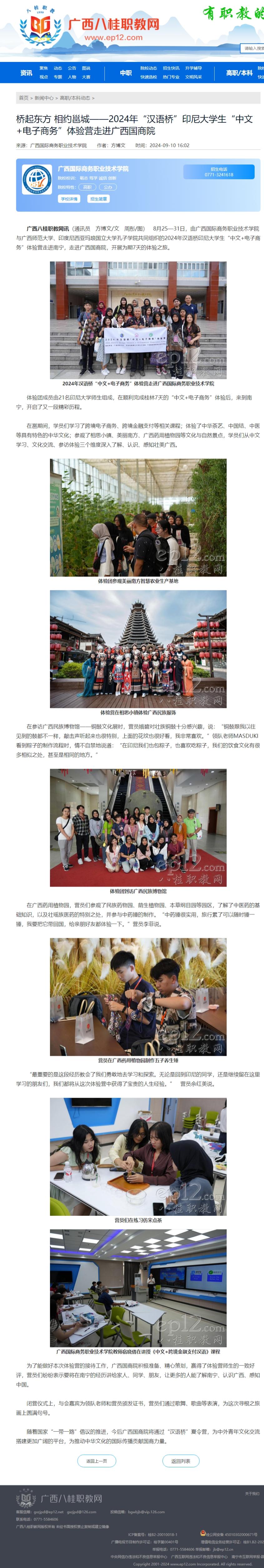 【广西八桂职教网】桥起东方 相约邕城——2024年“汉语桥”印尼大学生“中文+电子商务”体验营走进广西国商院