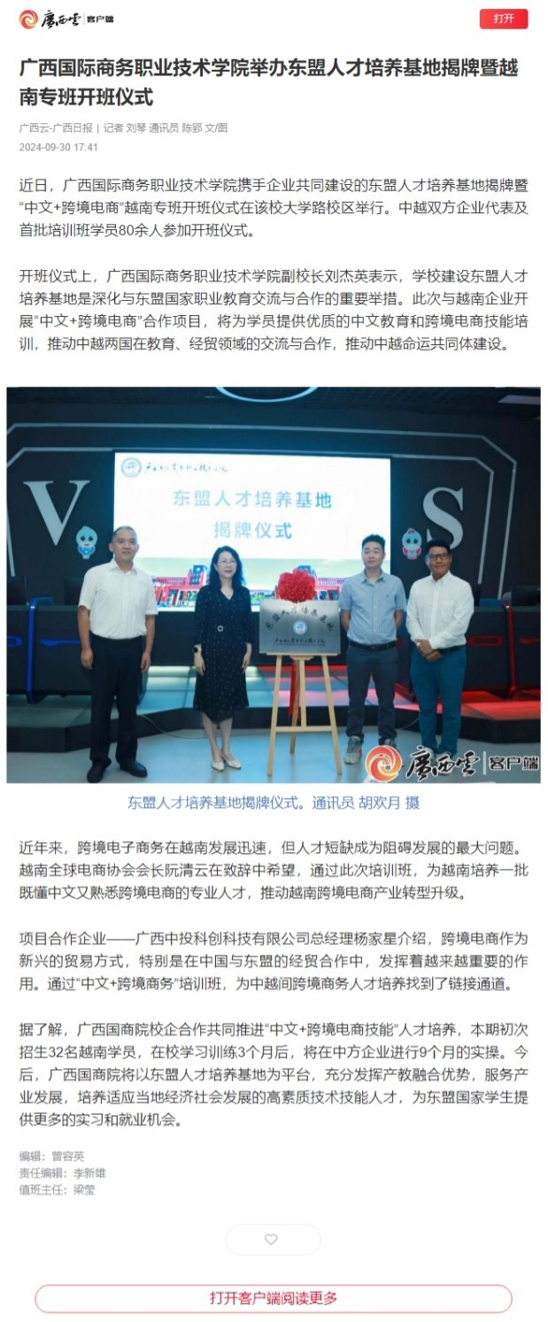 【广西日报】广西国际商务职业技术学院举办东盟人才培养基地揭牌暨越南专班开班仪式