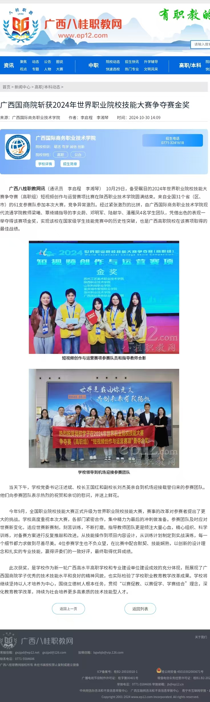 【广西八桂职教网】广西国商院斩获2024年世界职业院校技能大赛争夺赛金奖