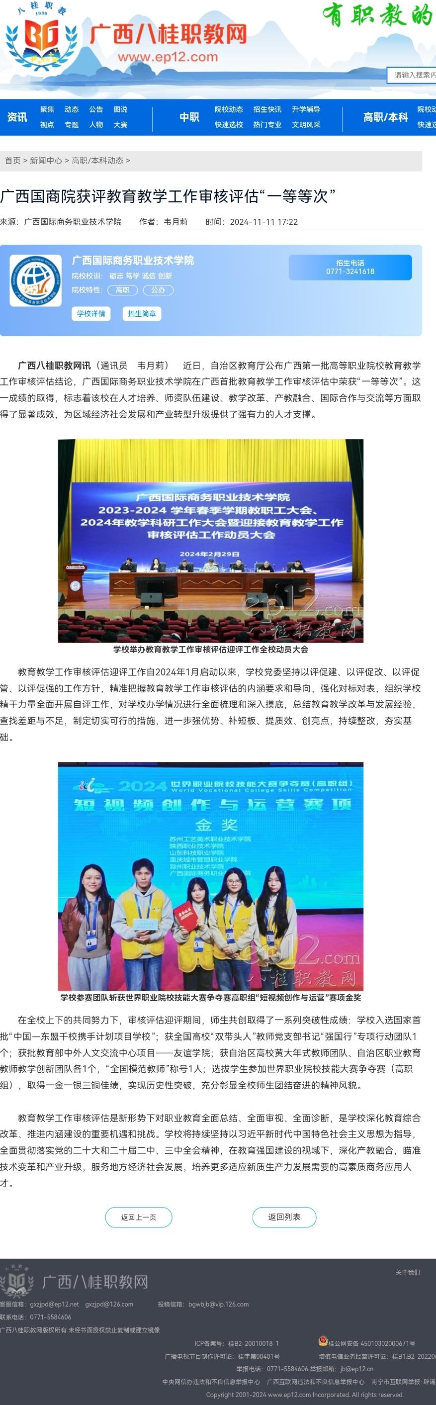【广西八桂职教网】广西国商院获评教育教学工作审核评估“一等等次”