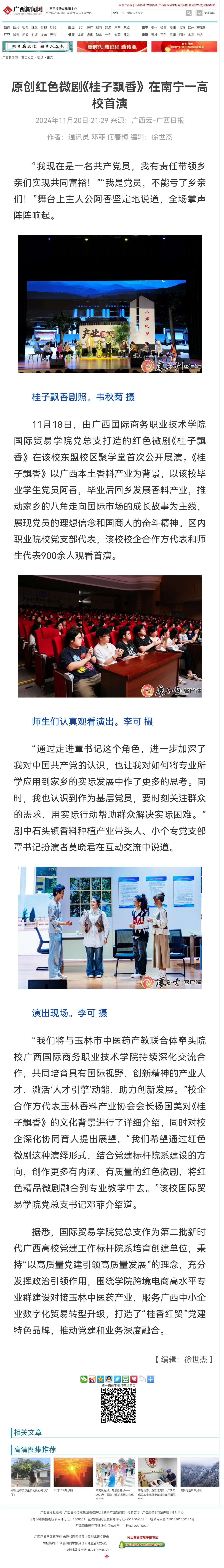 【人民网】广西国际商务职业技术学院原创红色微剧《桂子飘香》首演