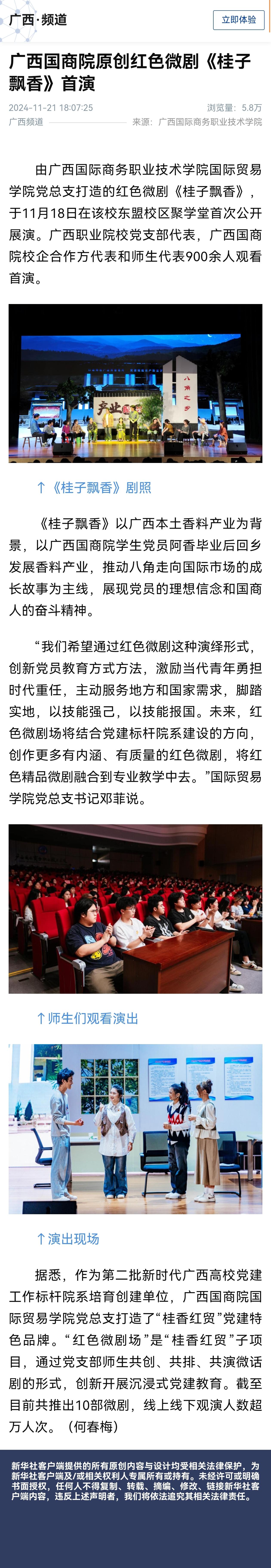 【新华社】广西国商院原创红色微剧《桂子飘香》首演