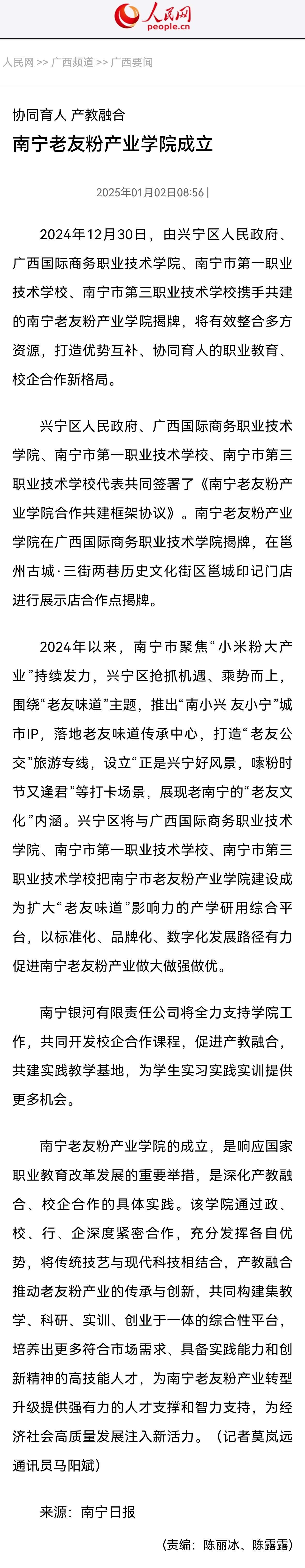 【人民网】协同育人 产教融合——南宁老友粉产业学院成立