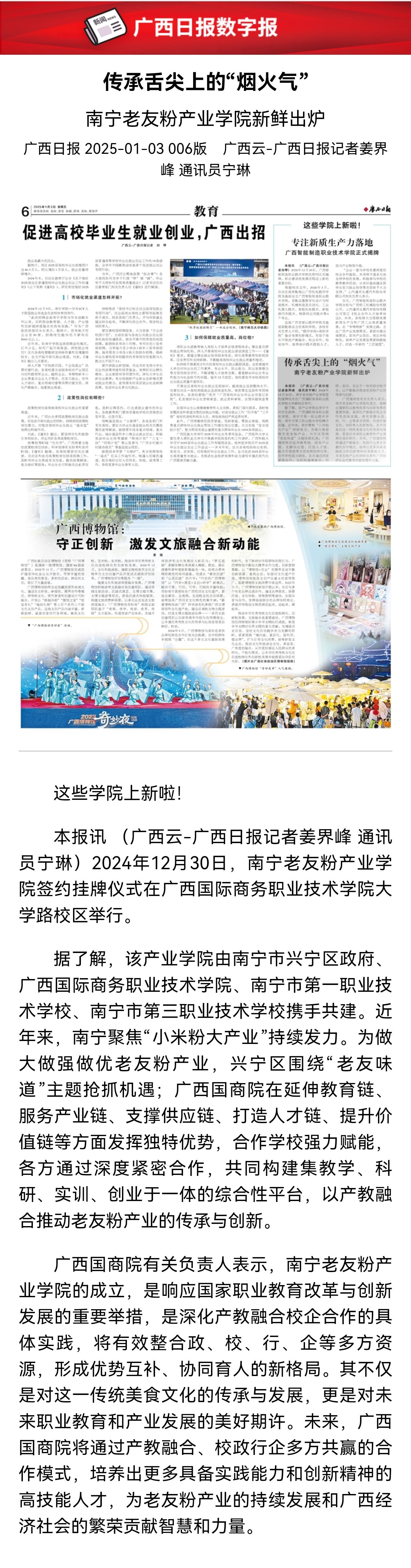 【广西日报】传承舌尖上的“烟火气”南宁老友粉产业学院新鲜出炉