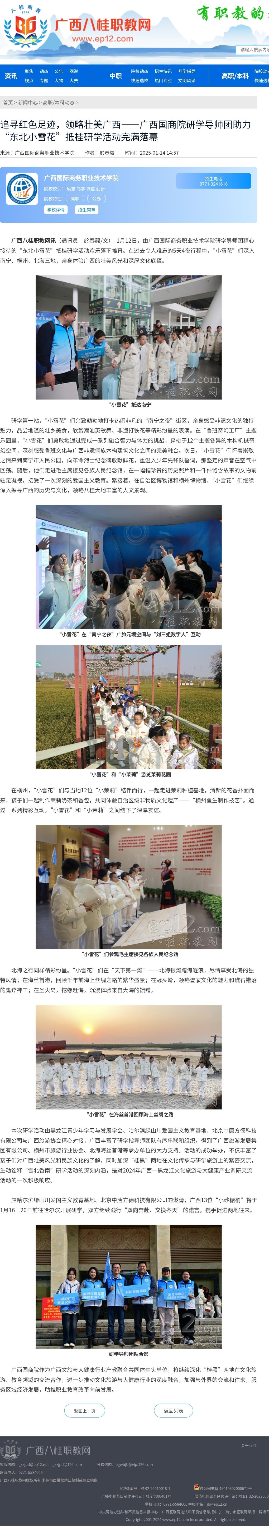【广西八桂职教网】追寻红色足迹,领略壮美广西——广西国商院研学导师团助力“东北小雪花”抵桂研学活动完满落幕