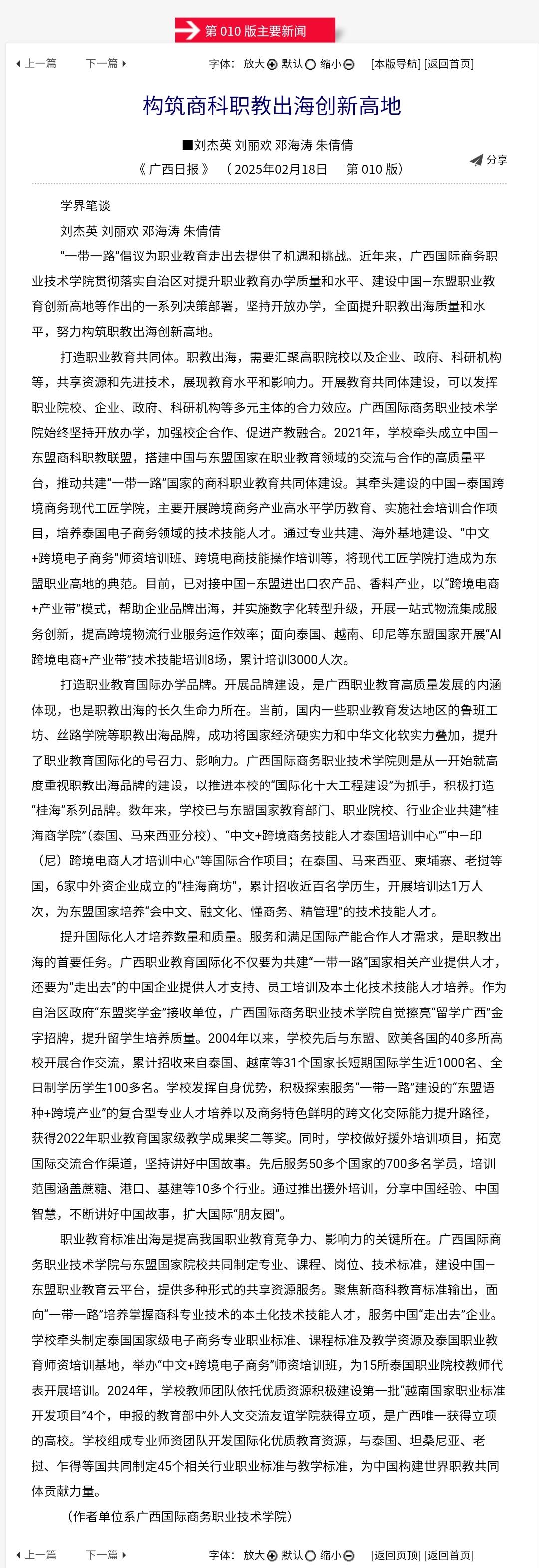 【广西日报】构筑商科职教出海创新高地