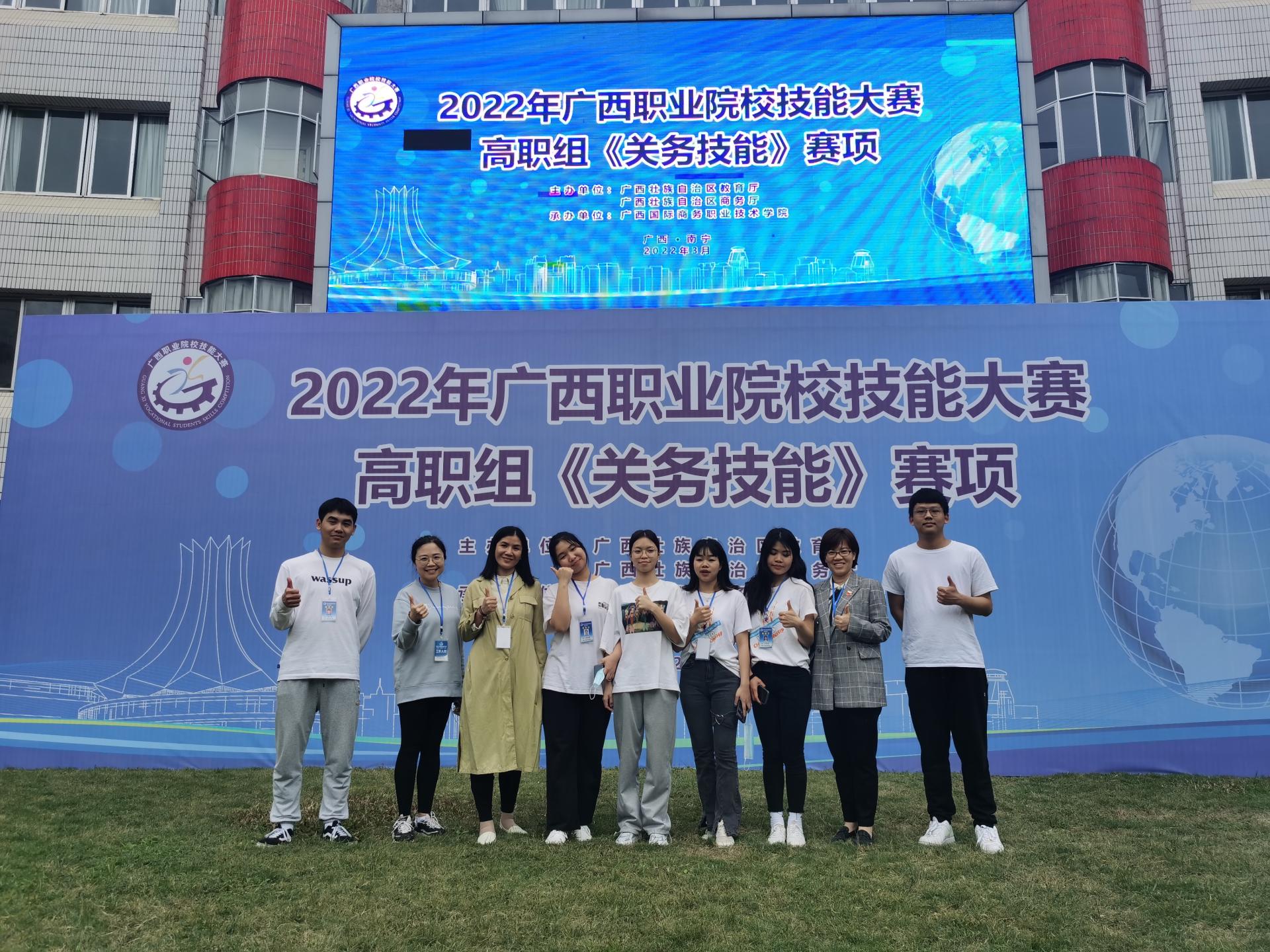 2022年3月至4月,由广西壮族自治区教育厅主办的2022年广西职业院校技能大赛圆满完成。本次大赛我校共派出109名选手参加了23个项目的角逐,经教育厅公示,共获得一等奖13项、二等奖8项、三等奖10项的好成绩,获奖项目18个,获奖率达78.3%。其中,互联网+国际贸易综合技能、关务技能、货运代理、创新创业及英语口语5个赛项参赛队伍将代表广西出征国赛阶段的角逐。各赛项具体获奖等次后续将由自治区教育厅公布。