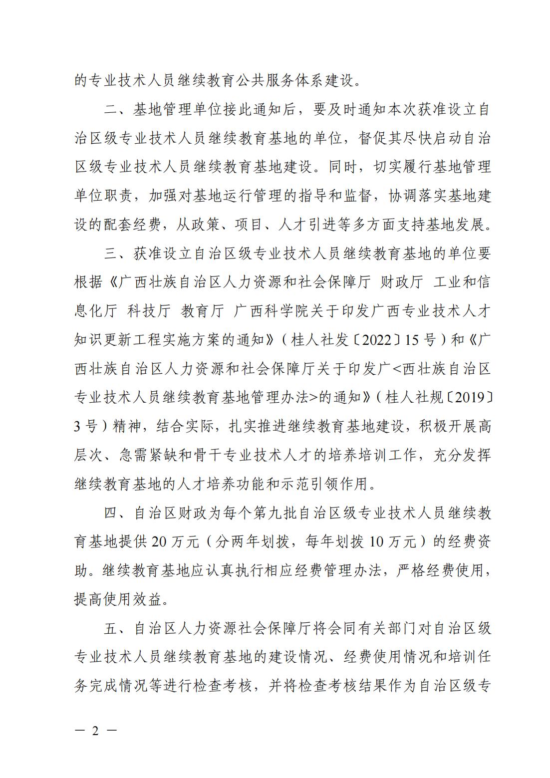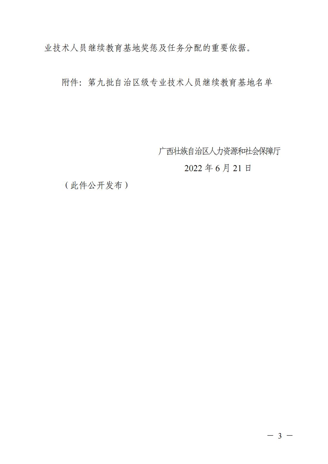 近日,自治区人力资源和社会保障厅发布《广西壮族自治区人力资源和社会保障厅关于在百色学院等单位设立第九批自治区级专业技术人员继续教育基地的通知》(桂人社函〔2022〕160号),我校获准成为自治区级第九批专业技术人员继续教育基地的9家单位之一。