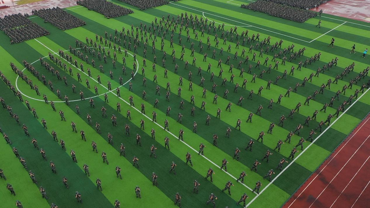 天空中大雨如注,绿茵场上口号震天。50个方阵,6150名2022级新生身着迷彩绿,迎着风雨,整齐划一的迈着正步通过观礼台接受检阅。在军事技能训练展示中,刺杀操气势如虹、擒敌拳虎虎生威、战术展示行云流水……充分展现了国商院学子们蓬勃向上精神风貌和学校严谨求实的作风。现场雷鸣般的掌声阵阵,同学们英姿飒爽、青春无敌。
