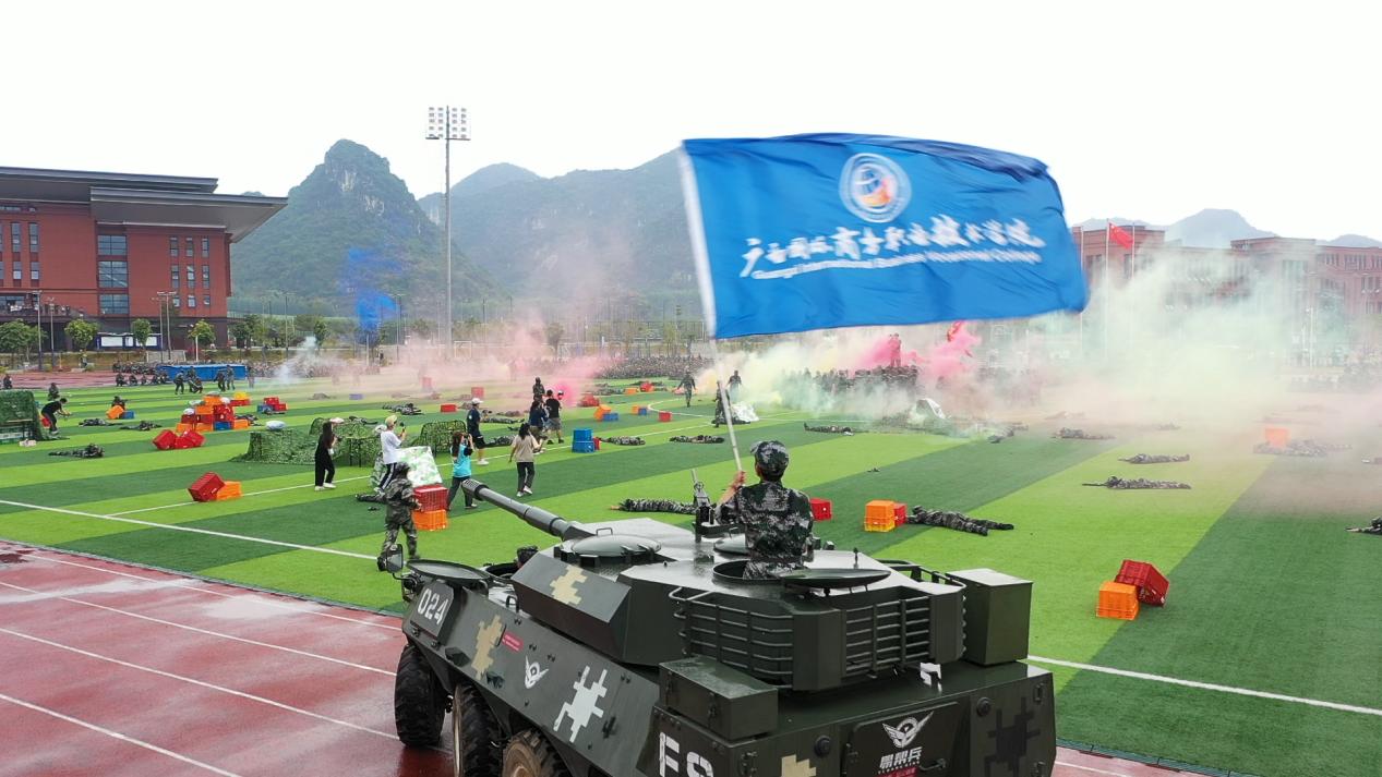 11月14日下午,我校在东盟校区进行2022级新生举行军训总结表彰大会。尽管突降大雨,现场却热火朝天,气氛热烈。学校党委书记谢云,党委副书记、校长王国红,副校长班克庆,副校长刘杰英,纪委书记甘忠,副校长蒋百平,南宁市西乡塘区武装部部长阎继宏等领导出席大会。大会由学校党委副书记青增计主持。