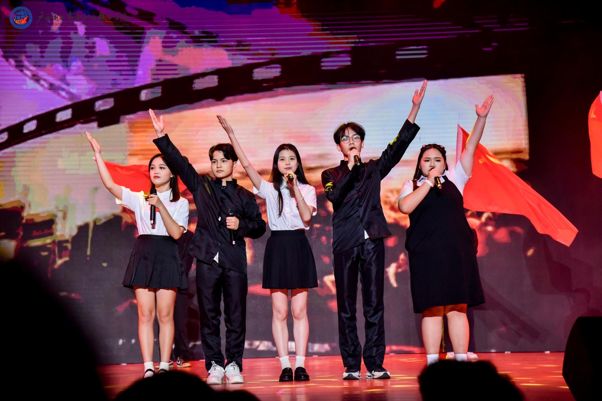 一篇《中国报告》,是数字艺术学院对中国共产党百年来走过的光辉历程的礼赞,铿锵有力的朗诵点燃了全场热情。