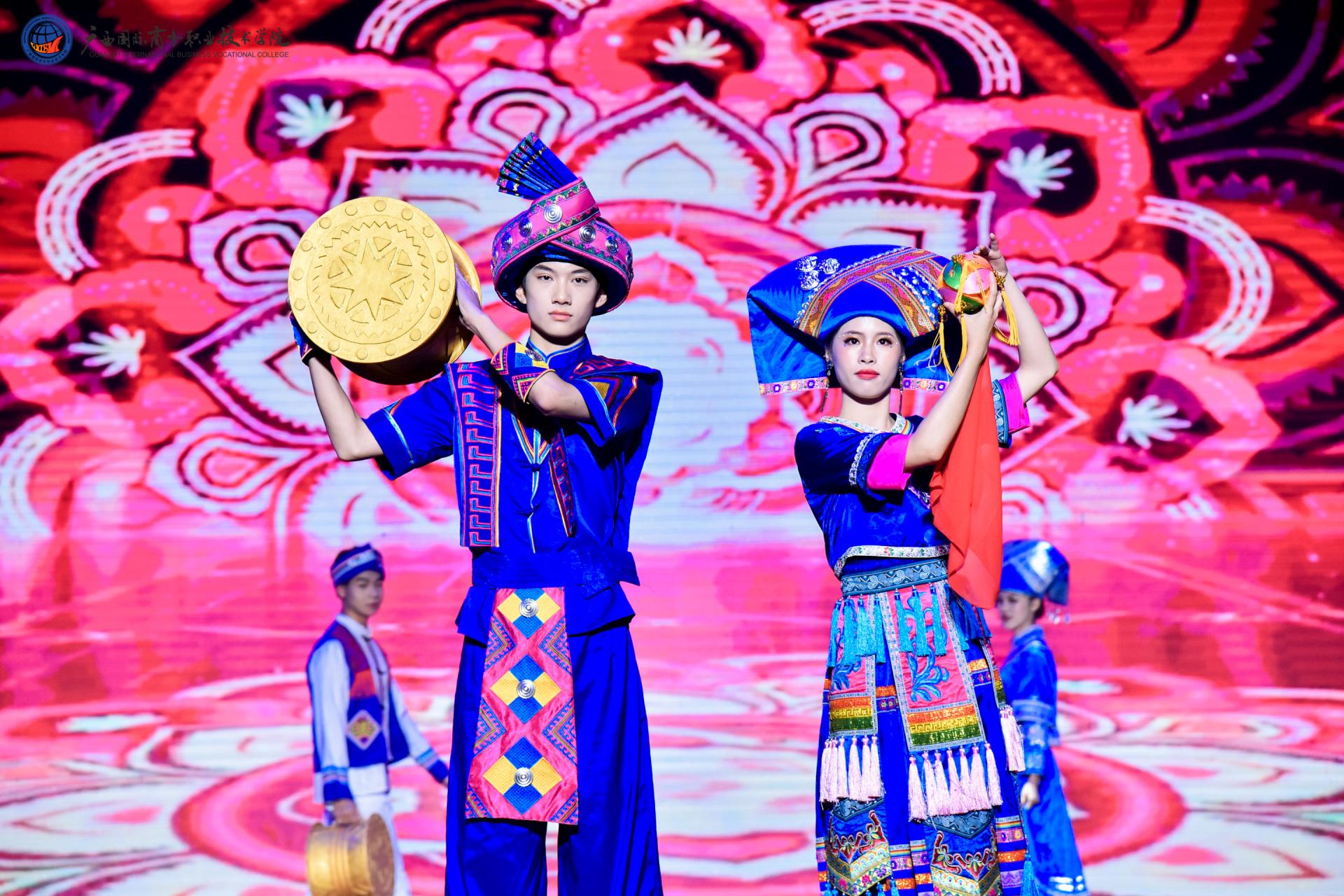 校团委带来的《广西壮族非遗拼布、绣球展》走秀节目,方寸之间描绘着壮族独特的文化艺术,让观众感受传承与艺术的融会贯通。