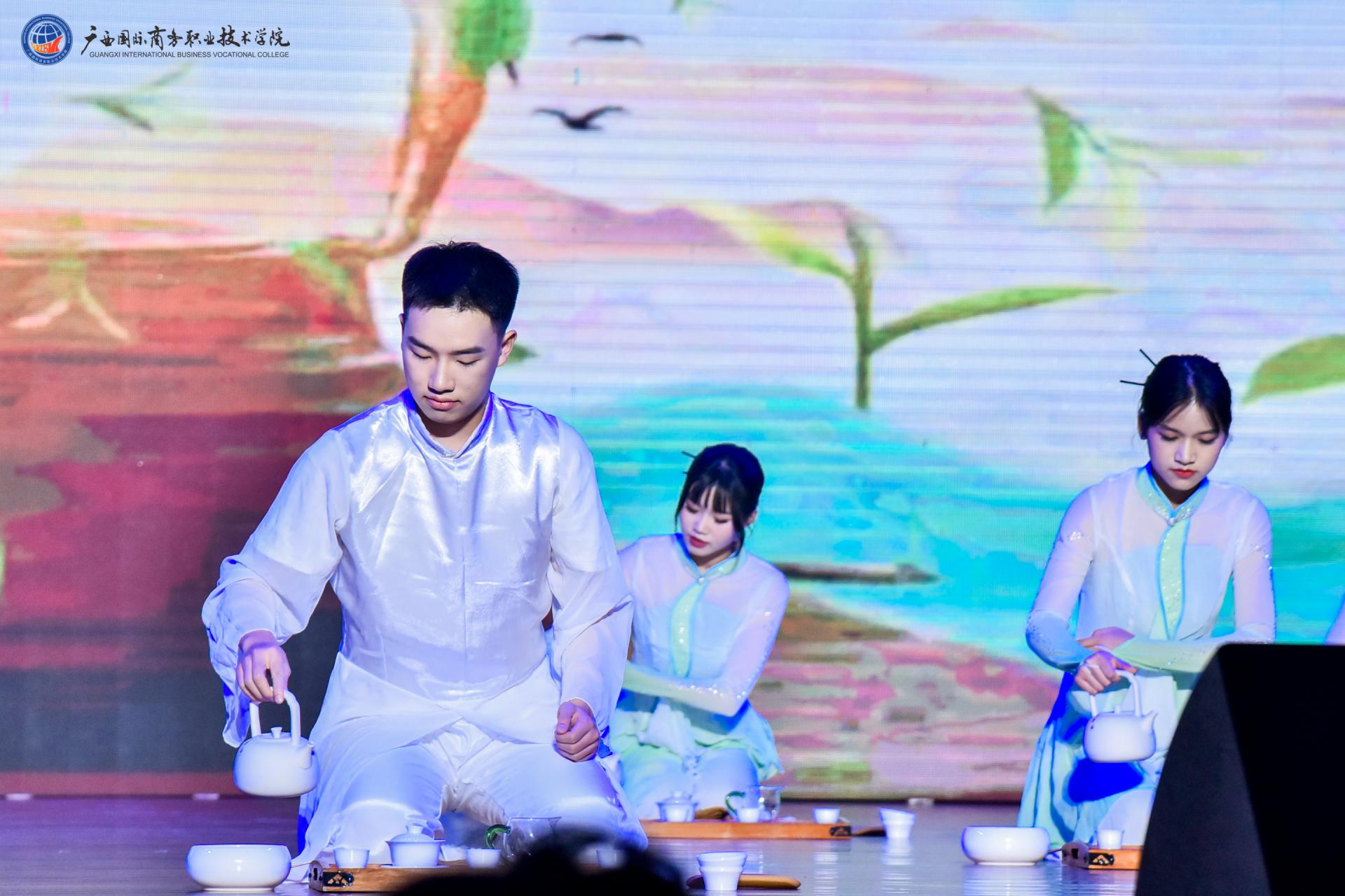 茶文化是中国文化的代表之一,文化与旅游学院的茶艺和舞蹈表演《茶飘香》让在场观众品味了茶与艺术的交融,展现了中华文化的深厚底蕴。