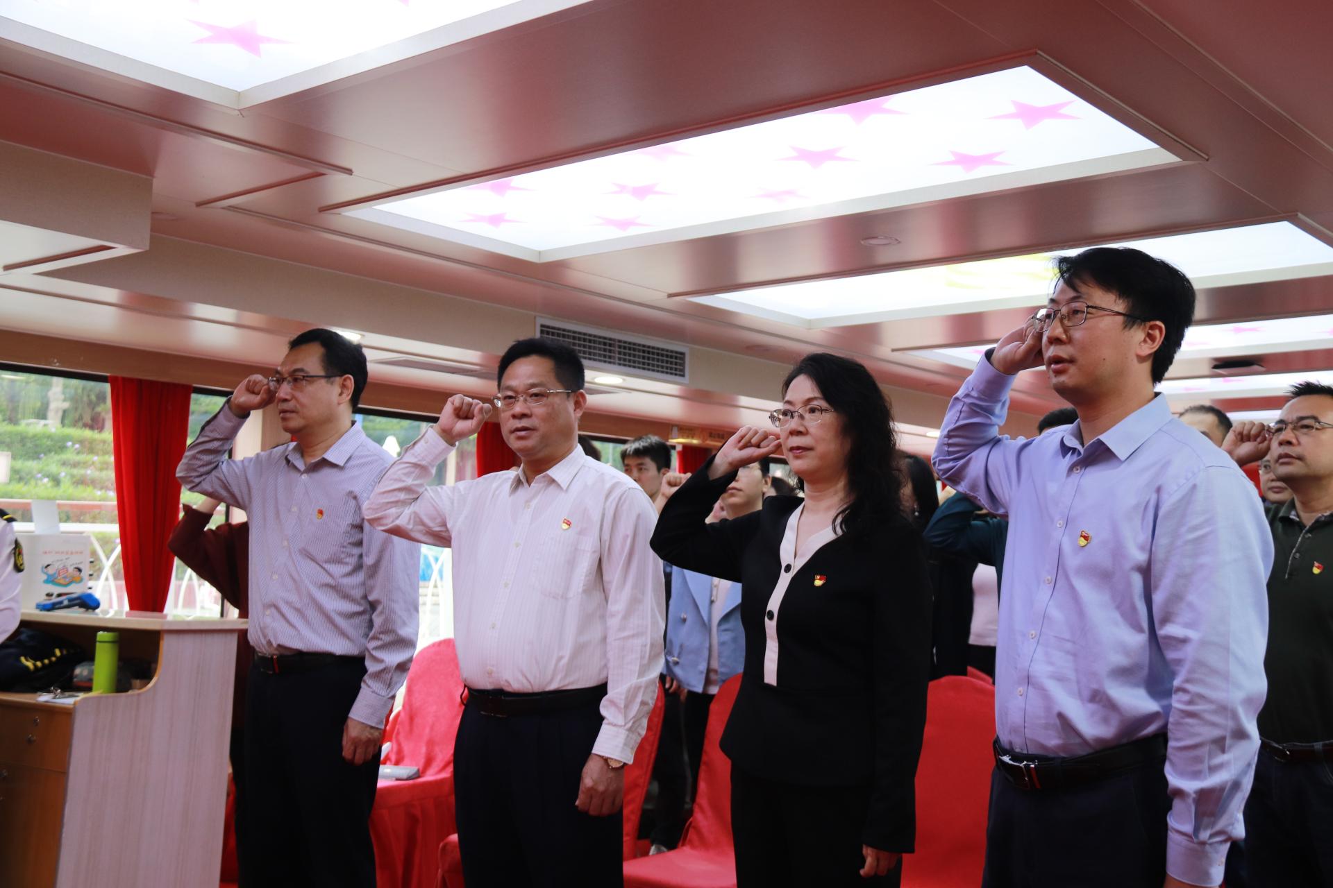 下午,读书班的学员们前往邕江红色主题游船,全体党员干部在党旗面前重温了入党誓词,一句句铮铮誓言响彻现场,强烈震撼着在场的每一位党员。