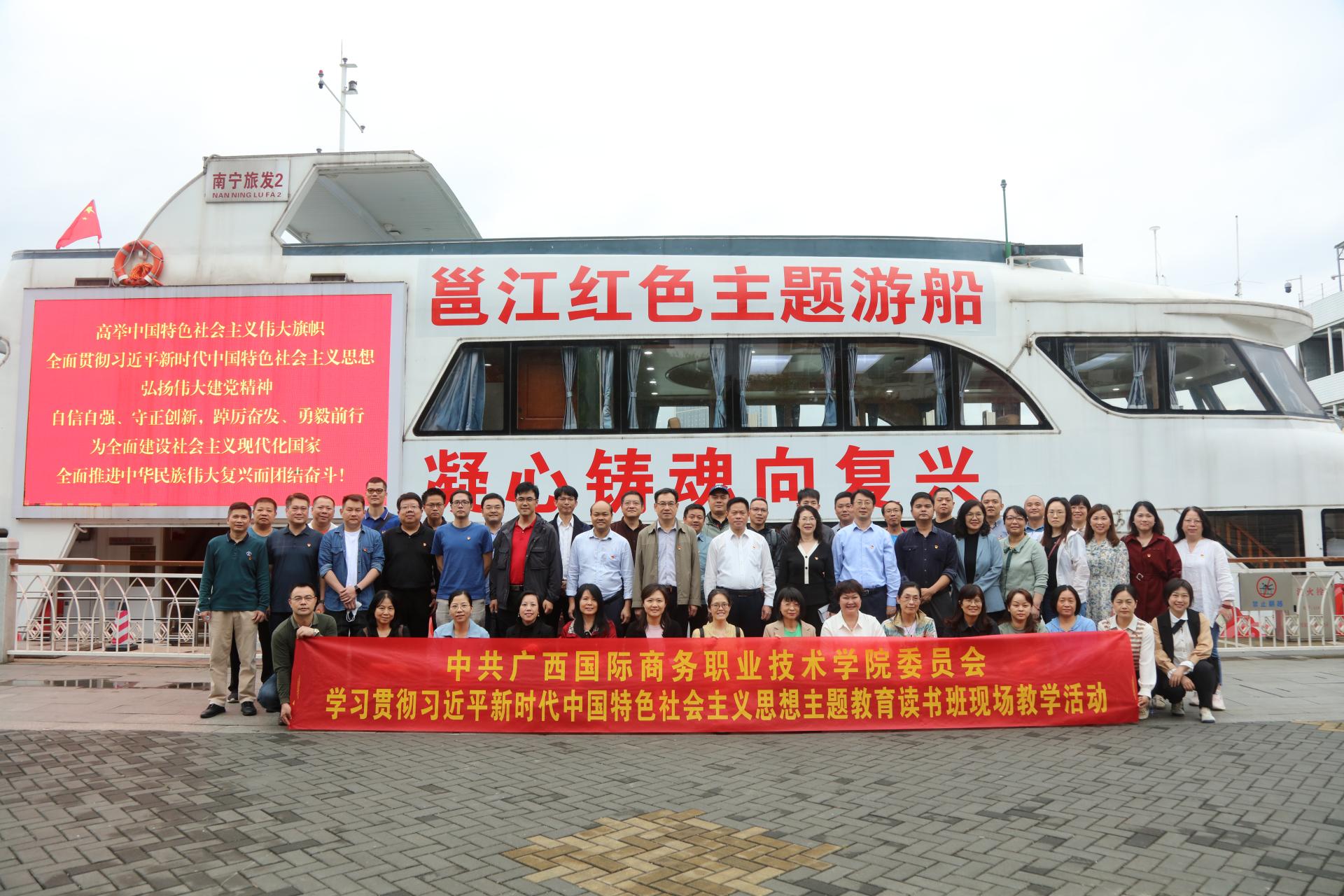 为推动学习贯彻习近平新时代中国特色社会主义思想主题教育走深走实,5月11日,学校党委学习贯彻习近平新时代中国特色社会主义思想主题教育读书班赴青秀山中国共产党人精神谱系主题园、竹园廉洁文化主题园和邕江红色主题游船开展现场教学活动。党委副书记青增计、副校长刘杰英、纪委书记甘忠、副校长蒋百平及中层干部50余人参加此次活动。