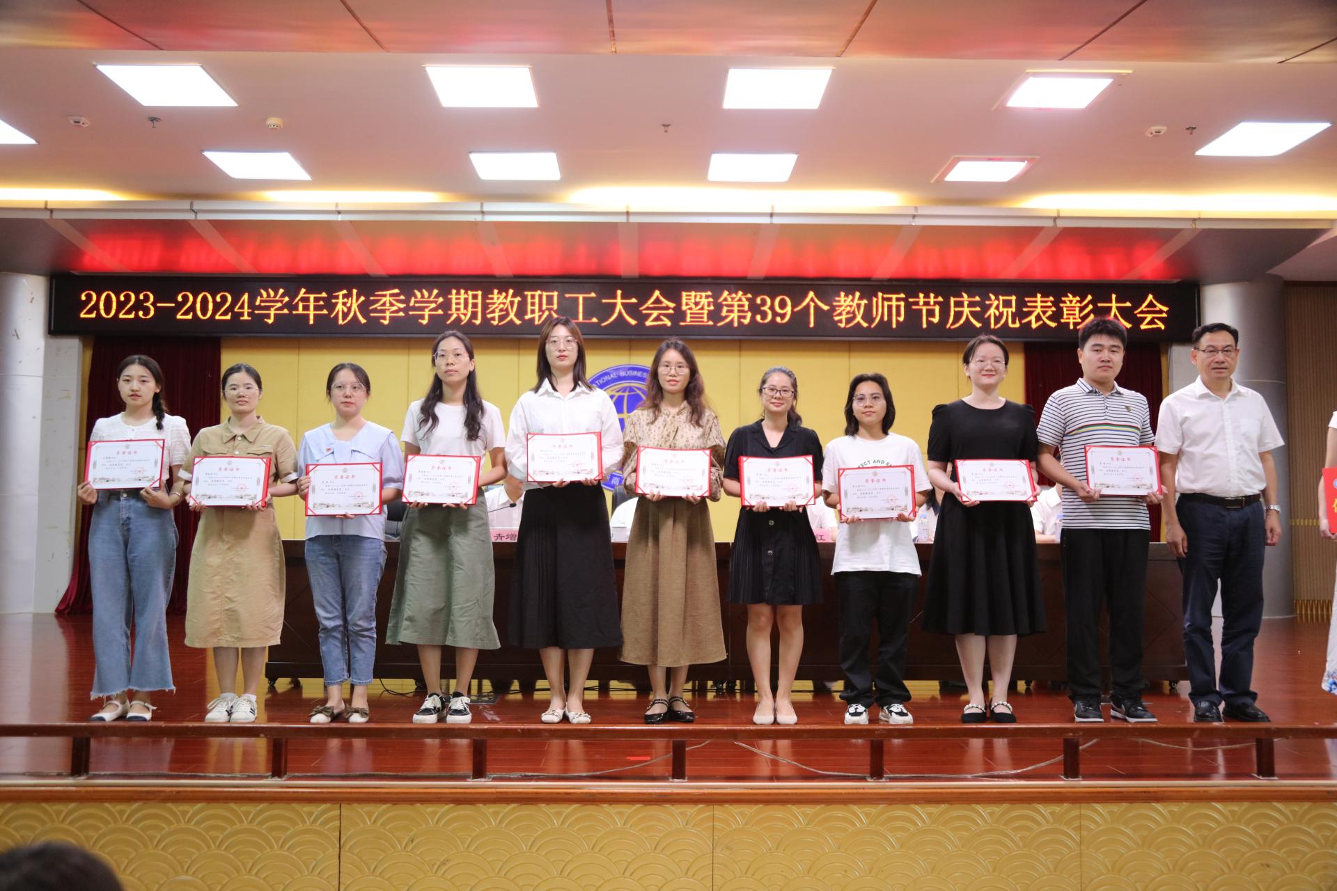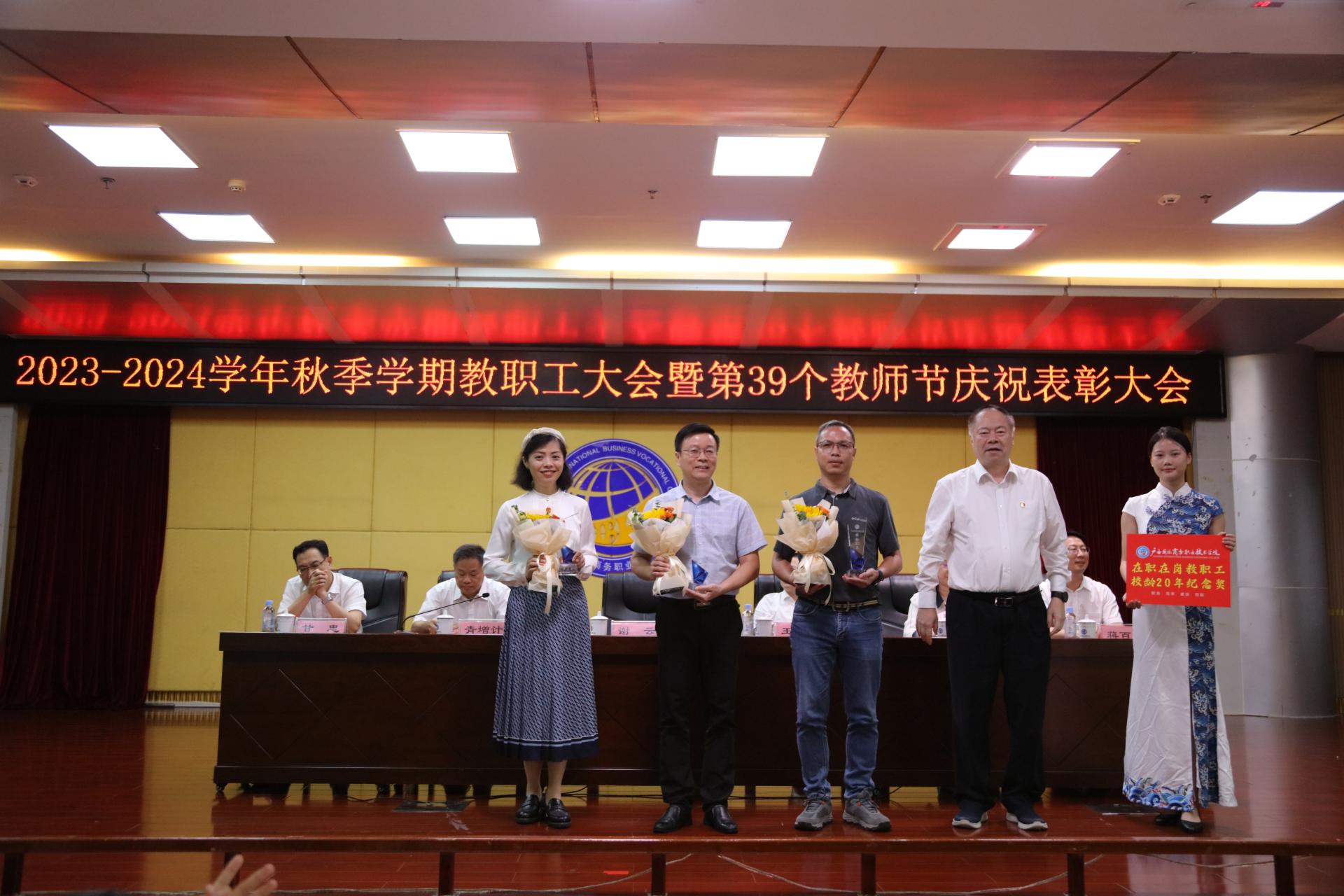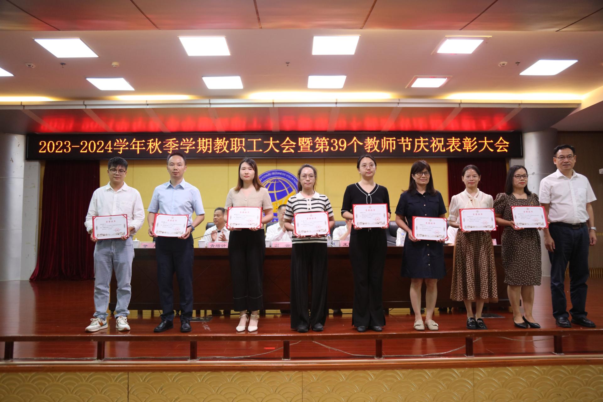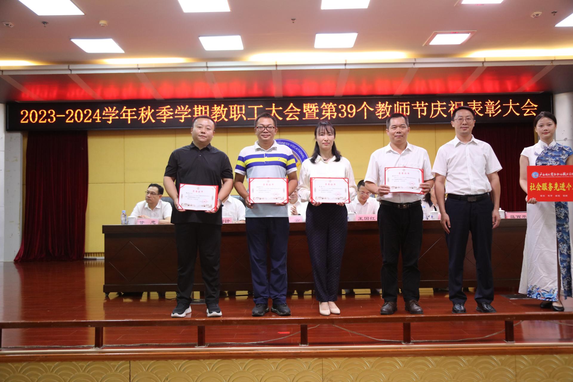 会上,青增计宣读了我校《关于2022年度激励干部担当作为专项奖励表彰的决定》和《关于表彰2022-2023学年教师节先进集体和先进个人的决定》,学校领导依次为受表彰的先进集体及先进个人颁发奖杯和证书。