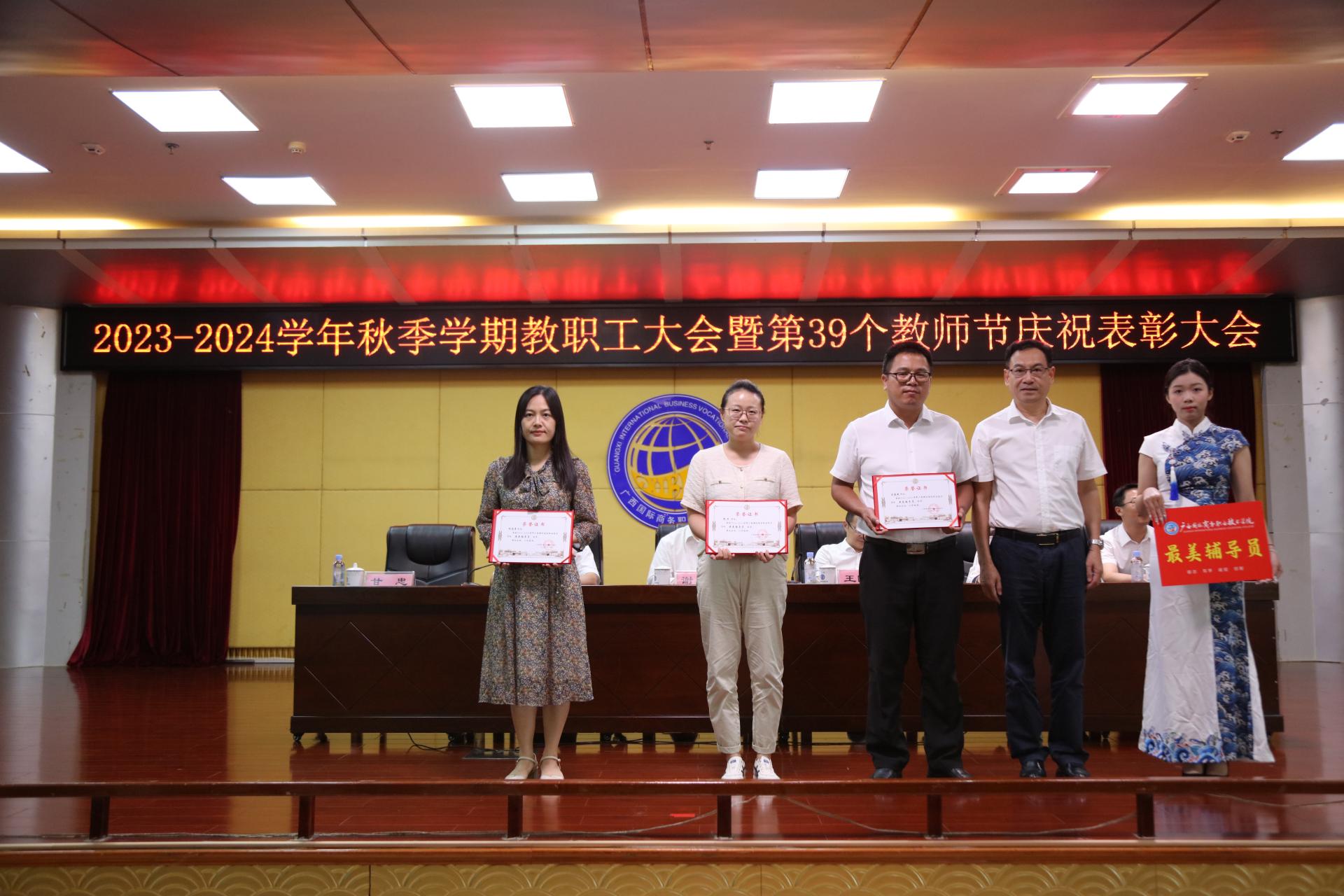 甘忠为获最美辅导员的代表颁奖