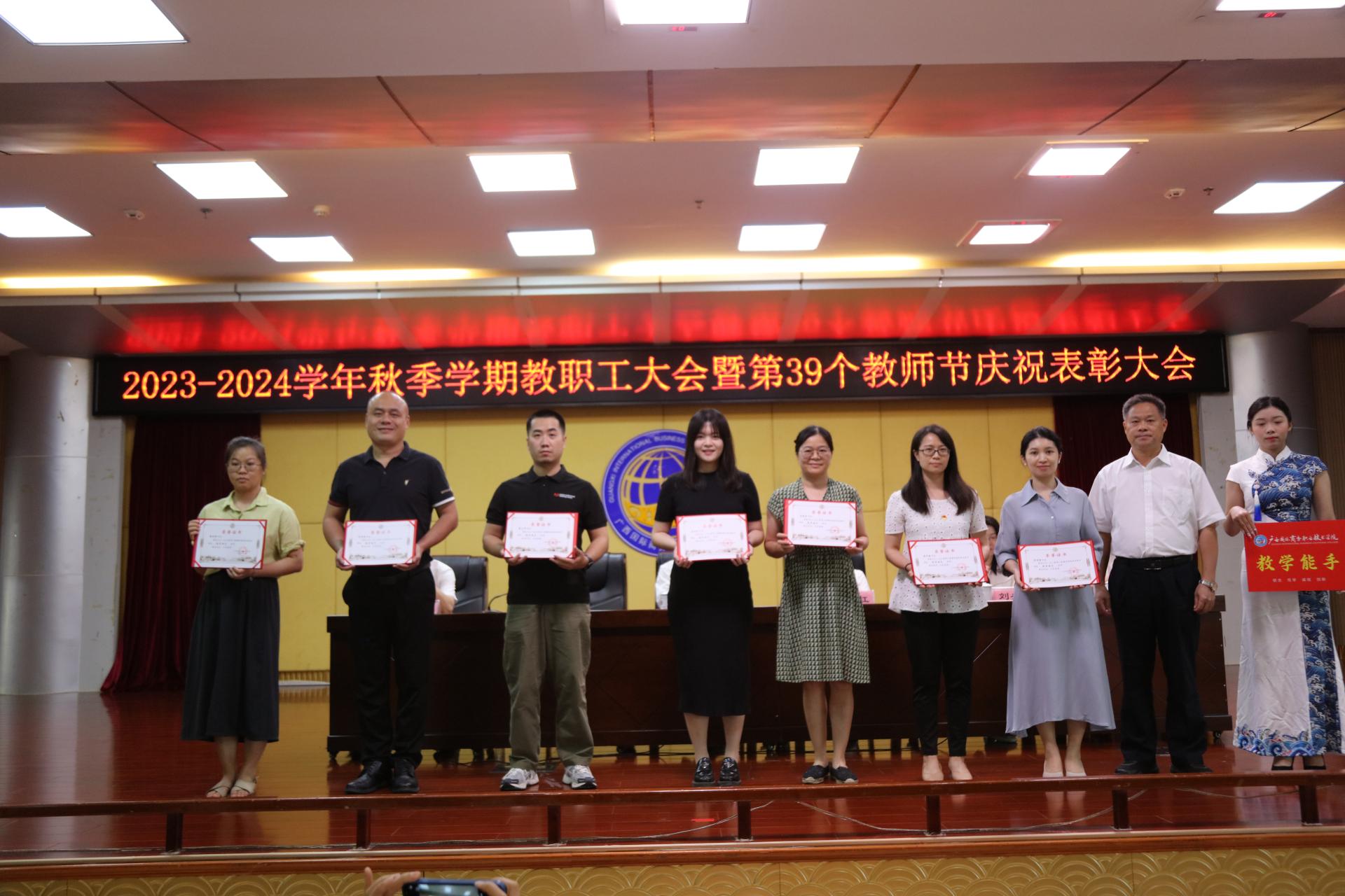 青增计为获教学能手的代表颁奖