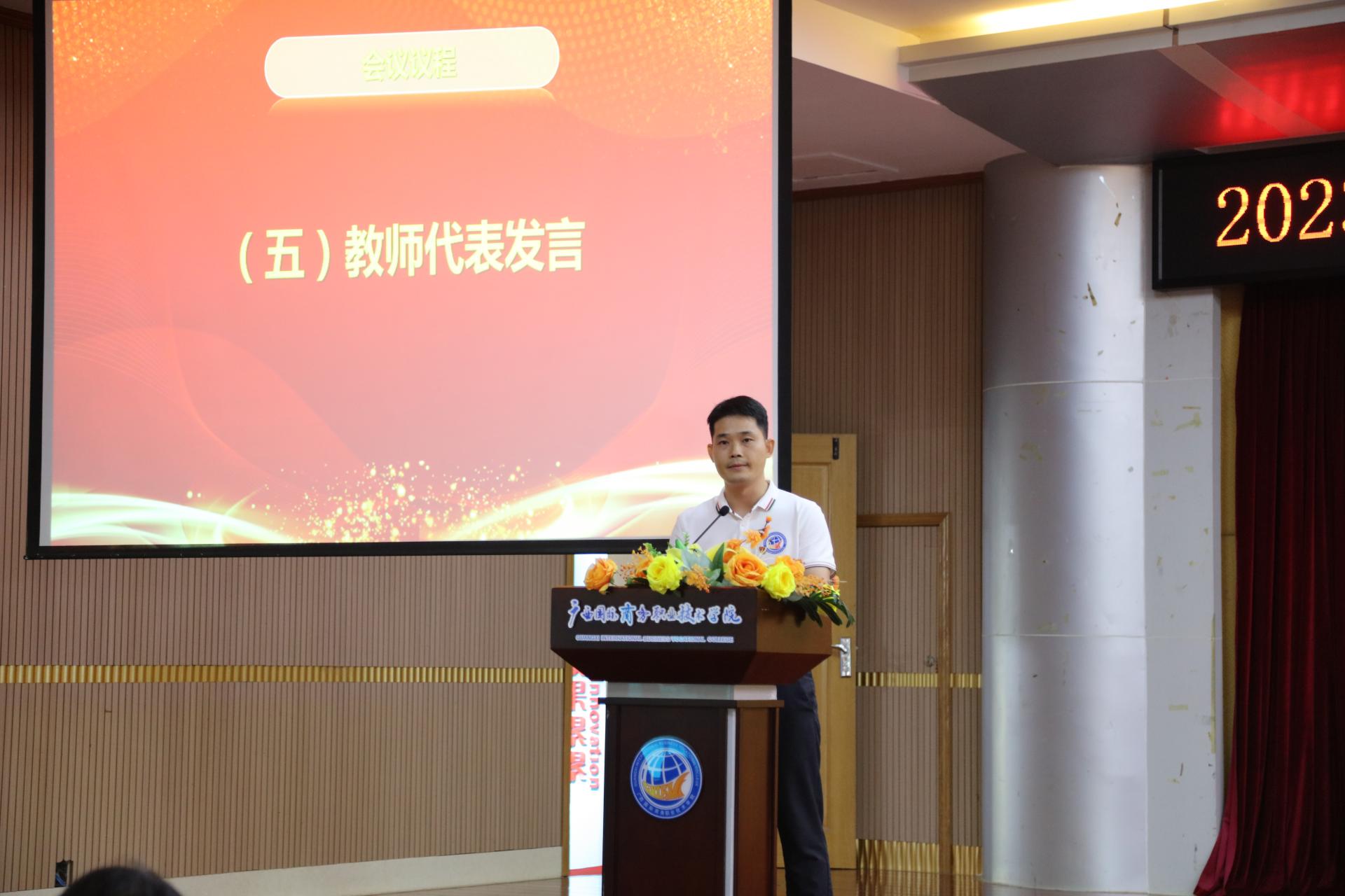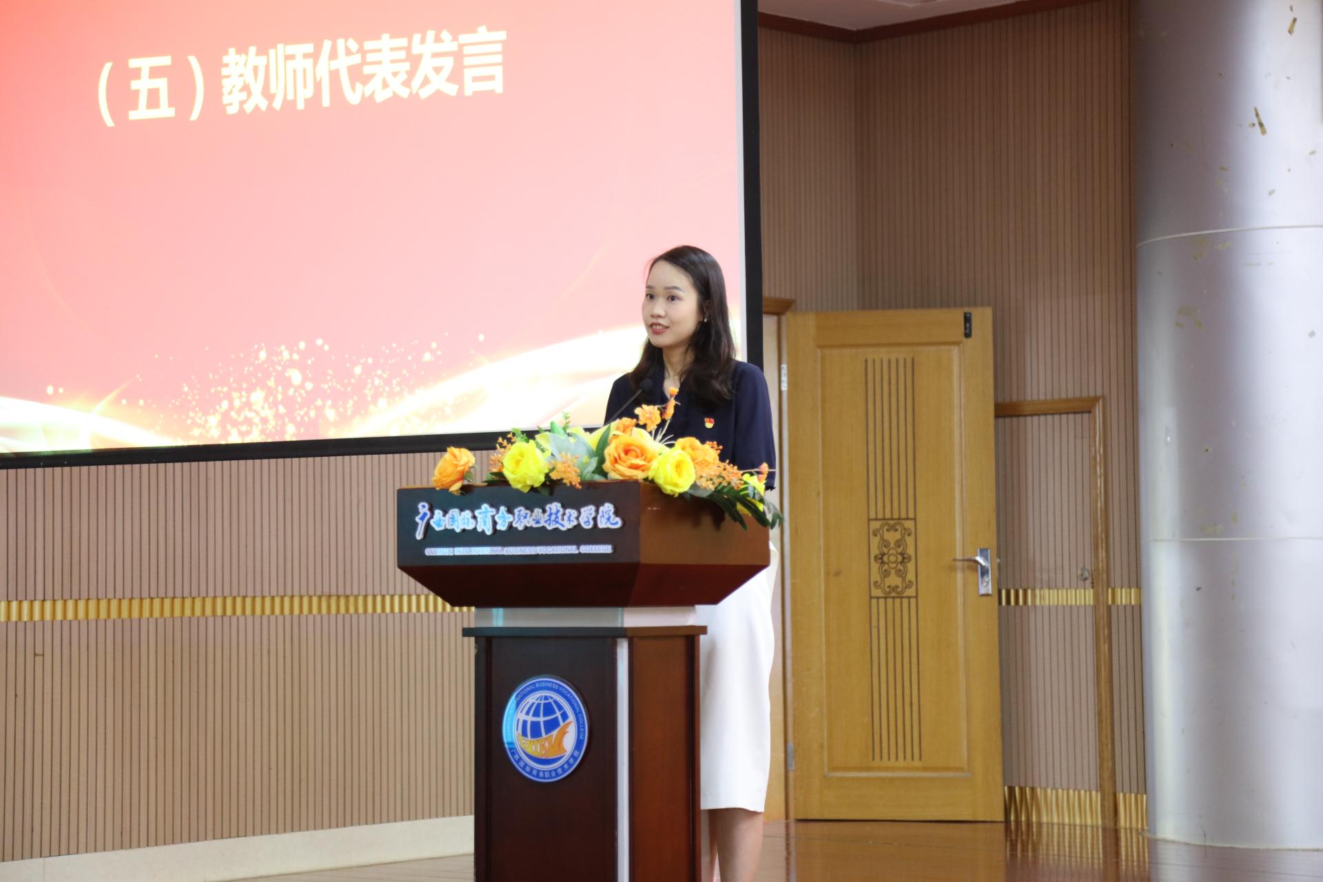 随后,数字艺术学院2022级动漫制作技术3班唐琳云同学作为学生代表发言,感谢师恩并代表全体国商学子向全体老师们致以节日的祝贺。现代流通学院物流管理专任教师谢志强和马克思主义学院专任教师马丽作为教师代表进行发言,两位老师分享了自己身为教师一路走来的经历及感想,勉励广大教师要以“四有”好老师的标准严格要求自己,不负使命、砥砺奋进,用卓有成效的工作为学校高质量发展贡献力量,为热爱的教育事业奋斗终生。