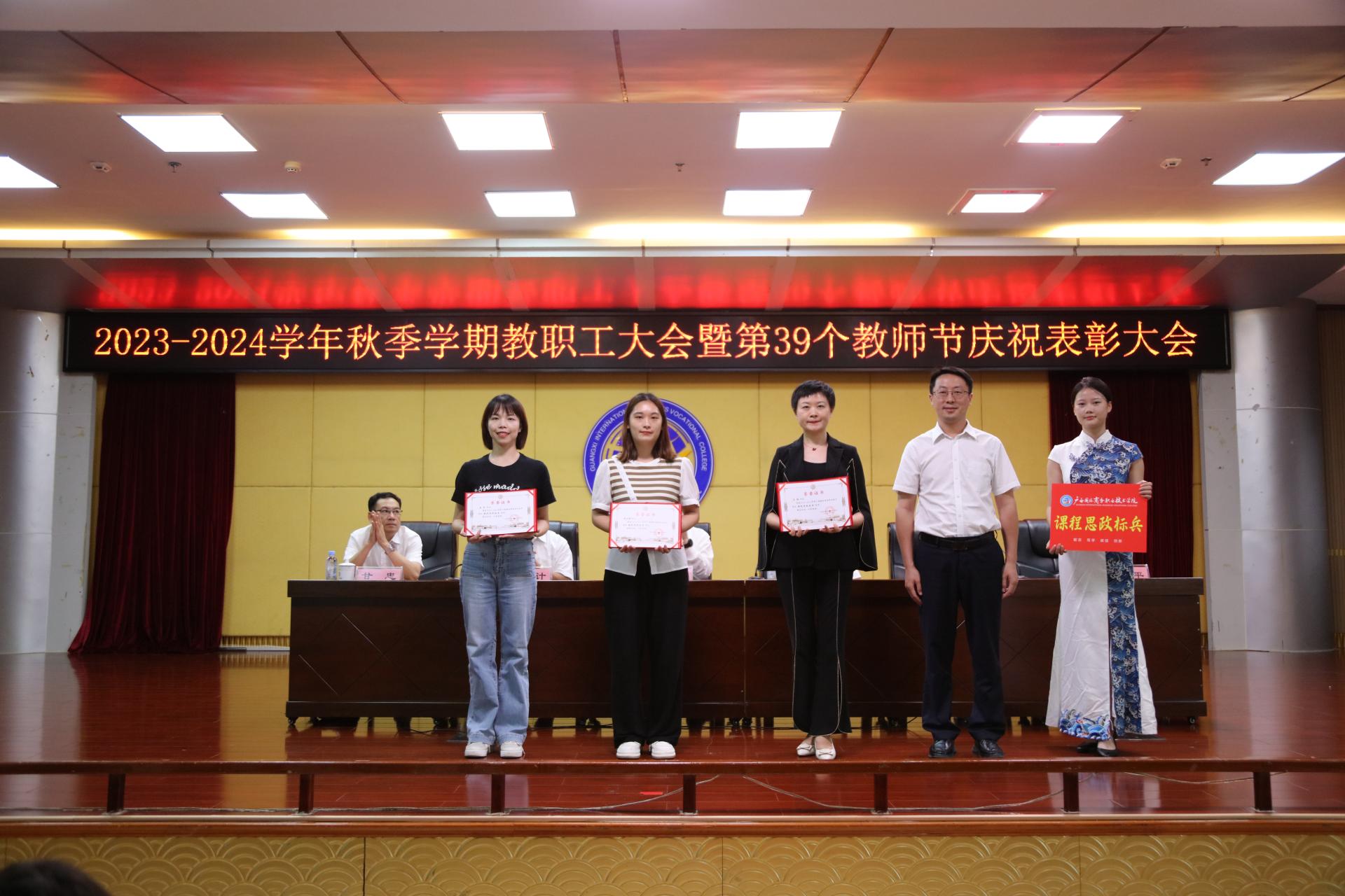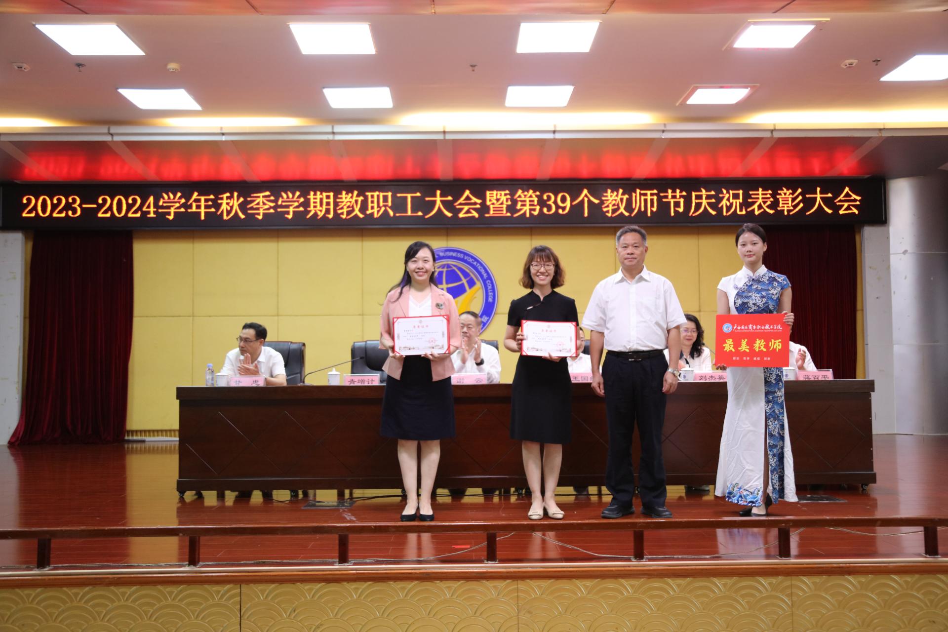 青增计为获最美教师的代表颁奖