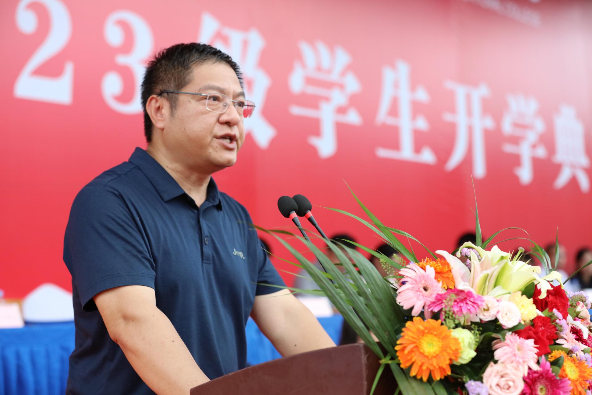 教师代表,来自数字艺术学院的叶军老师根据从教多年的经验,结合专业教学实际,重点谈了能力、专业、学习——通往未来的三把钥匙。他以自身所教专业为例,跟同学们交流了社会需要什么专业内容,学生应该掌握什么专业技能,高职院校的学生应该怎样读书学习等。新生代表,智能与信息工程学院2023级信息安全技术应用专业陈广源跟新同学们分享了他的未来规划并以此共勉,一是养成良好的学习习惯;二是掌握学习专业技能方法;三是培养综合素养能力。退役军人新生代表,继续教育学院2023级计算机网络技术专业陆贵其回顾了军营岁月,他表示定将珍惜当下,用知识武装自己,在全面建设社会主义现代化国家新征程中,以青春之我,诠释着军人本色的使命担当。在校生代表,金融经济学院2022级国际金融专业杨子祺跟学弟学妹们分享了来国商院读书一年的心路和历程,特别是一年时间里取得的学习成绩和人生进步。