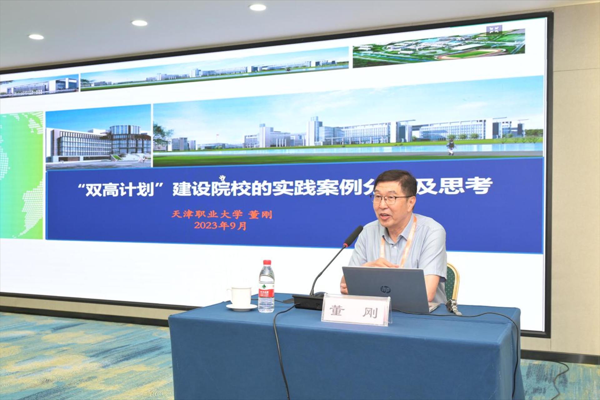 董刚作了主题为《“双高计划”建设院校的实践案例分享及思考》的报告。详细阐述了“双高计划”建设的总体目标和改革发展任务,从加强党的建设、打造技术技能人才培养高地、打造技术技能创新服务平台、打造高水平专业群、打造高水平双师队伍、提升校企合作水平、提升服务发展水平、提升学校治理水平、提升信息化水平、提升国际化水平等十个方面深入浅出地分析了多所“双高计划”建设院校的实践案例,系统阐述了高水平专业群的建设路径。并结合自身丰富的工作经验,为学校“双高计划”建设明确了重点,指明了方向。