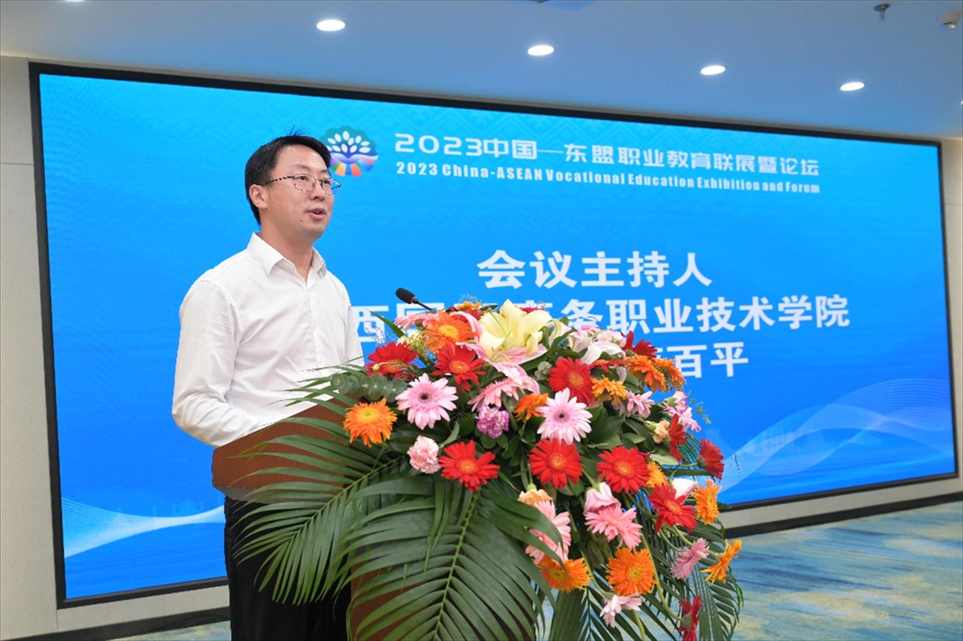王国红在致辞中介绍了我校“双高计划”建设取得的成效。“双高计划”建设是国家和自治区推进职业教育改革发展的一项重大部署,他希望通过与会人员的积极务实研讨,共同探索新一轮“双高计划”建设的新方法、新载体、新范式;通过“双高计划”建设示范引领作用,推动广西职业教育高质量发展,打造面向东盟的职业教育开放合作创新高地,为新时代中国特色社会主义壮美广西和中国—东盟命运共同体建设贡献力量。