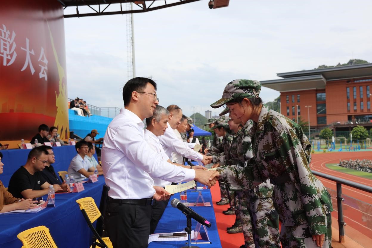 军训汇演结束后,蒋百平宣读表彰文件,对在本次军训中涌现出的表现优异的“优秀学员”“内务卫生先进宿舍”“军事技能训练先进集体”“最美连队”进行了表彰。
