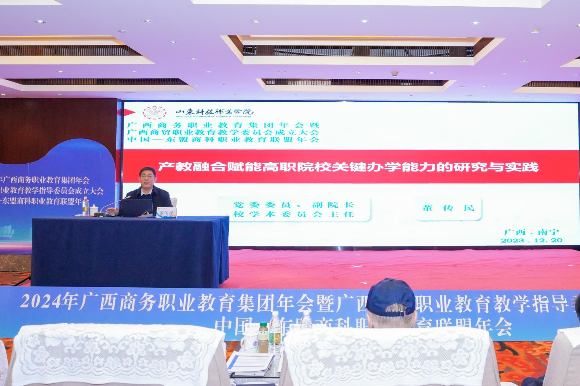 12月19日-20日,一场聚焦广西商科职业教育发展与合作创新的盛会——2024年广西商务职业教育集团年会暨广西商贸职业教育教学指导委员会成立大会、中国—东盟商科职业教育联盟年会在南宁市红林大酒店成功举办。此次大会汇聚了国内外百余名商科职业教育领域的专家学者、行业精英及政府代表,共同围绕“共享职教成果,推动商科职业教育合作创新”的主题,深入研讨高质量构建政行企校协同的职业教育发展新机制,服务广西社会经济发展。