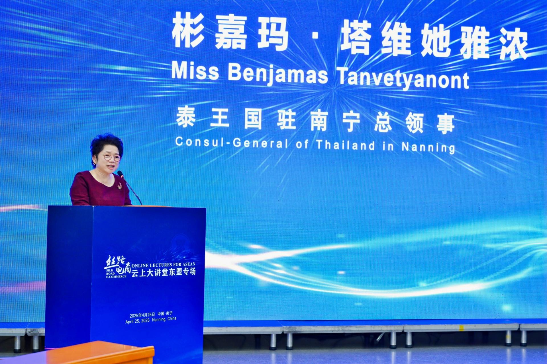 携手同行,共享发展机遇。泰国驻南宁总领事彬嘉玛·塔维她雅浓表示,数字经济已成为国际贸易与投资的核心驱动力,电子商务为各国创造商机、拓展就业作用显著。当前,中泰电子商务合作成果丰硕,中国商品在泰国广受欢迎,泰国优质产品亦通过中国电商平台成功开拓市场。各方应加强知识共享、技术创新及政策协同,充分利用数字技术,优化物流,深化合作,共同推动跨境电商发展。泰国驻南宁总领事馆及商务处愿与各方深化合作,共促互利共赢。