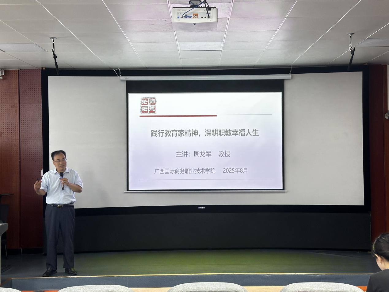 全国模范教师周龙军以“践行教育家精神,深耕职教幸福人生”为题,用自身育人故事、学生成长案例和教学创新经验,生动诠释教育家精神内涵,并激励新入职人员坚守职教初心,以爱心与责任深耕教学一线。纪检监察室主任莫振达开展“增强纪律意识和规矩意识,做一名合格的高校教师”培训,引导新入职人员从入职之初就筑牢纪律防线,将规矩意识融入教学、科研和管理等各项工作,以合规履职、廉洁从教的姿态开启职业征程。此外,新入职人员走进南宁市红色工运教育体验馆,开展“走进红色工运,团结奋进新征程”实践教学,厚植爱国爱党情怀,凝聚奋进力量。