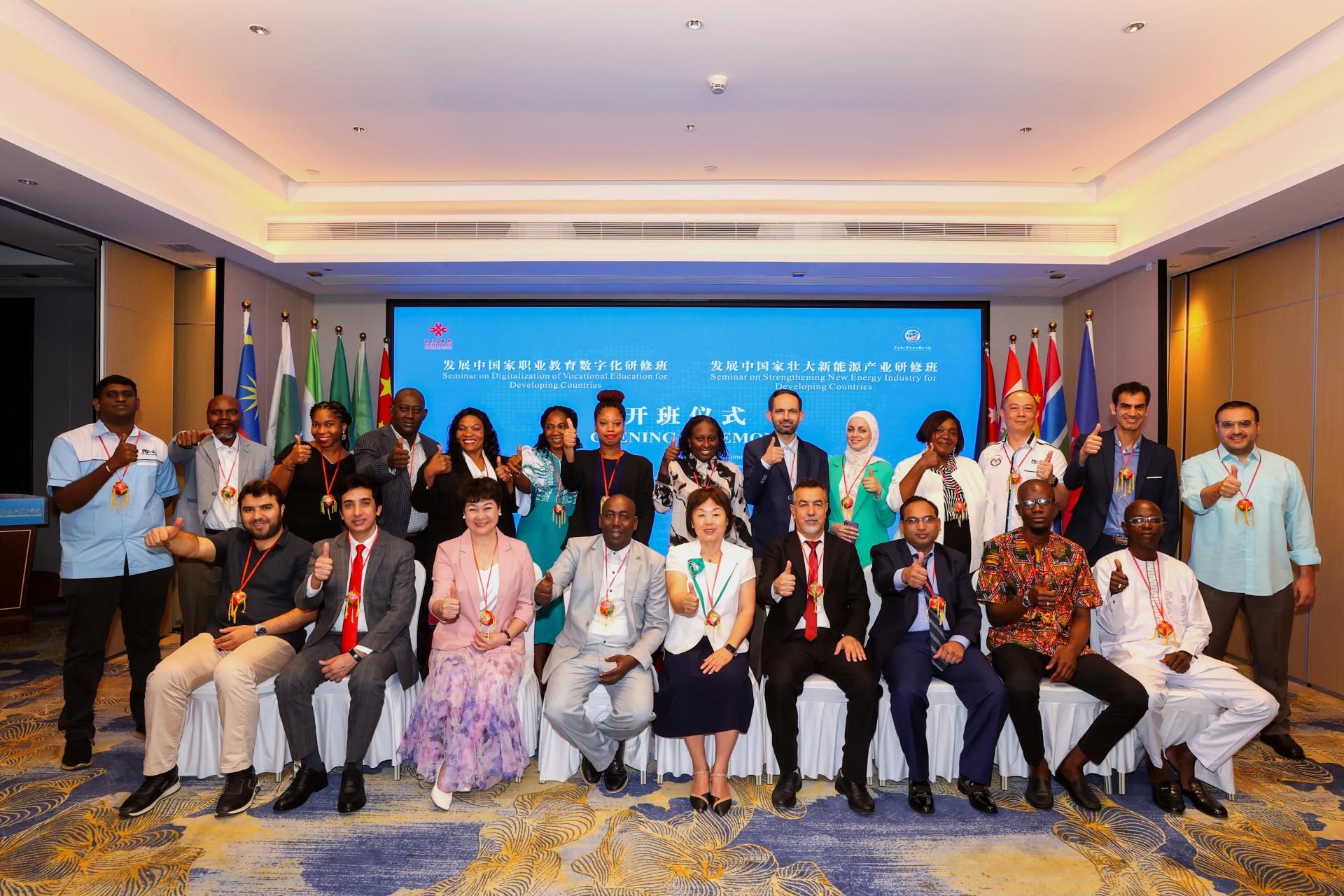 赵迪琼在讲话中指出,数字赋能与绿色转型双轮驱动,已成为推动全球可持续发展的两大核心力量,职业教育数字化和新能源产业共同指向以人为本、绿色包容的未来图景,不仅关乎当前产业竞争力的提升,还决定着在全球新格局中的话语权和适应力。希望学员们以本次研修为契机,在研修期间积极交流互鉴,深入研讨思考,为推动全球可持续发展贡献智慧与力量。