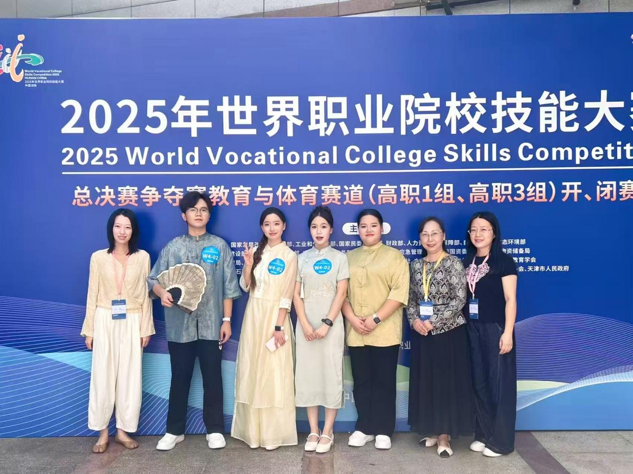 近日,2025年世界职业院校技能大赛总决赛争夺赛教育与体育赛道(高职组)比赛在湖南长沙落下帷幕,我校应用外国语学院学生潘若楠、李海滔、吴思韵、朗柯妤(指导老师:卢俐芃、罗遐)凭借卓越的语言能力、出色的应变技巧与沉稳的台风,从来自全国141所职业院校的166支参赛团队、655名顶尖选手从众多强手中脱颖而出,一举斩获银奖。