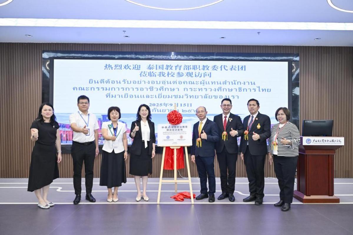 在全场嘉宾的共同见证下,中泰双方代表共同为“中泰AI赋能职业教育师资培训基地”揭牌,标志着这一跨国合作平台正式启动,也标志着中泰职业教育合作从“友好互访”迈向“务实共建”的新阶段。