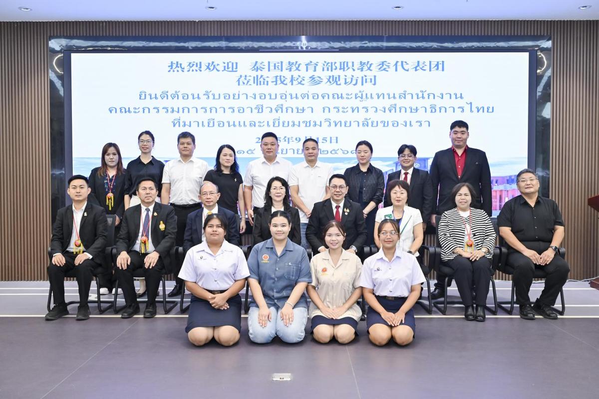 9月15日下午,泰国教育部职业教育委员会副秘书长素拉鹏・厄姆乌泰与春武里职业学院校长皮隆・维里亚普拉科布一行8人莅临我校东盟校区访问交流。此次到访旨在深入贯彻落实中国—泰国跨境商务现代工匠学院标志性成果建设要求,扎实推进AI技术赋能职业教育创新发展工作,切实推动数字化转型升级。我校校长刘杰英、副校长赵迪琼及相关部门负责人热情接待并举行座谈交流。