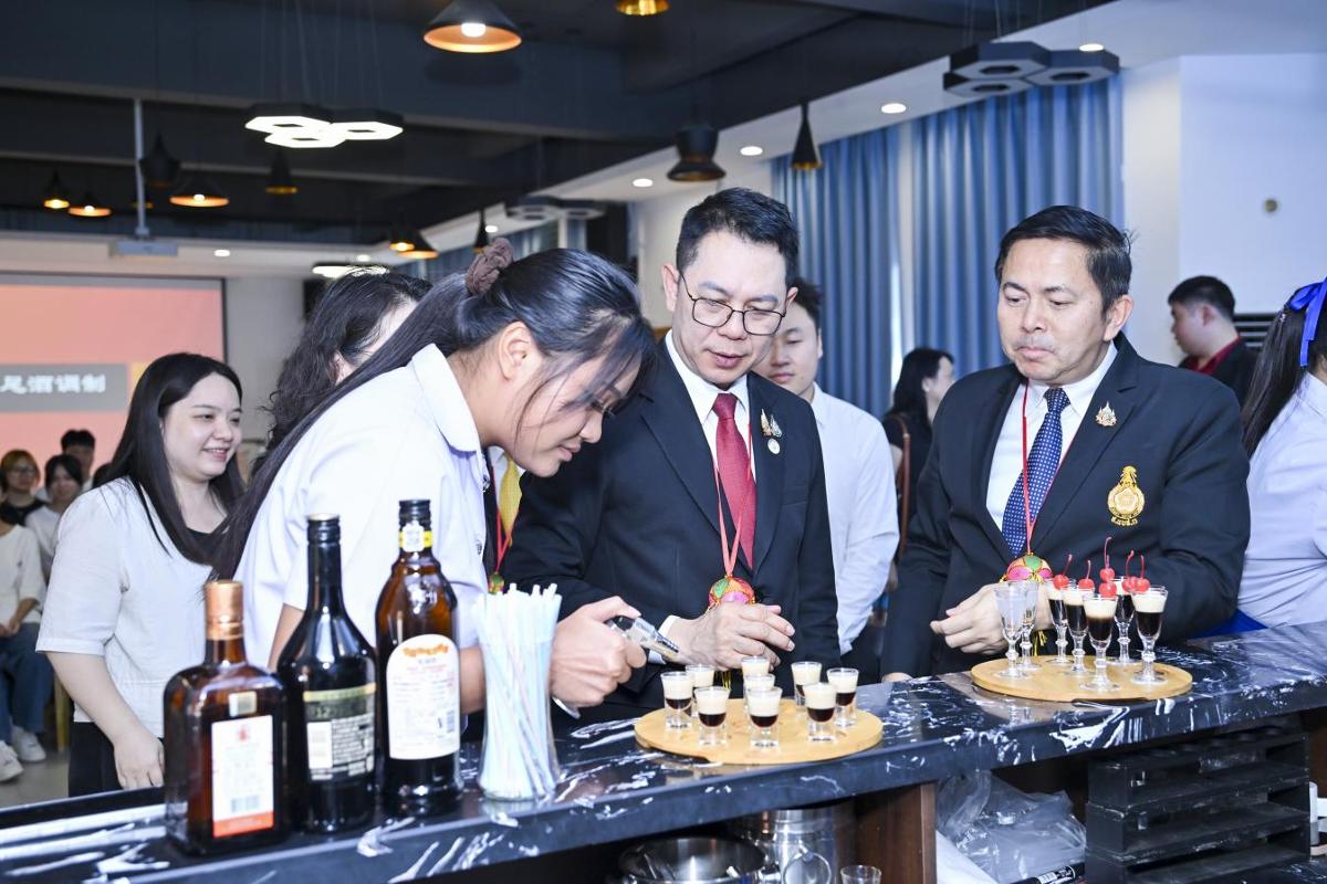 访问期间,泰方代表团还先后参观了我校现代流通学院智慧新零售实训基地、国际贸易学院跨境商务产教融合创新中心、文化与旅游学院双创咖啡酒水实验室及留学生宿舍,详细了解我校在智慧教育、产教融合、国际化办学等方面的特色成果。