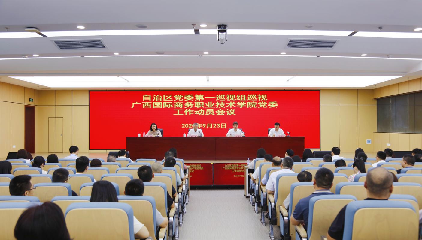 根据自治区党委统一部署,2025年9月23日下午,十二届自治区党委第八轮巡视第一巡视组巡视广西国际商务职业技术学院党委工作动员会召开。自治区党委第一巡视组组长林华受自治区党委巡视工作领导小组委托,就深入学习贯彻习近平总书记重要讲话精神,自觉接受巡视监督,支持配合本轮巡视工作提出明确要求,并通报本轮巡视的主要任务和工作安排。广西国际商务职业技术学院党委书记汪述斌主持会议并作表态发言。