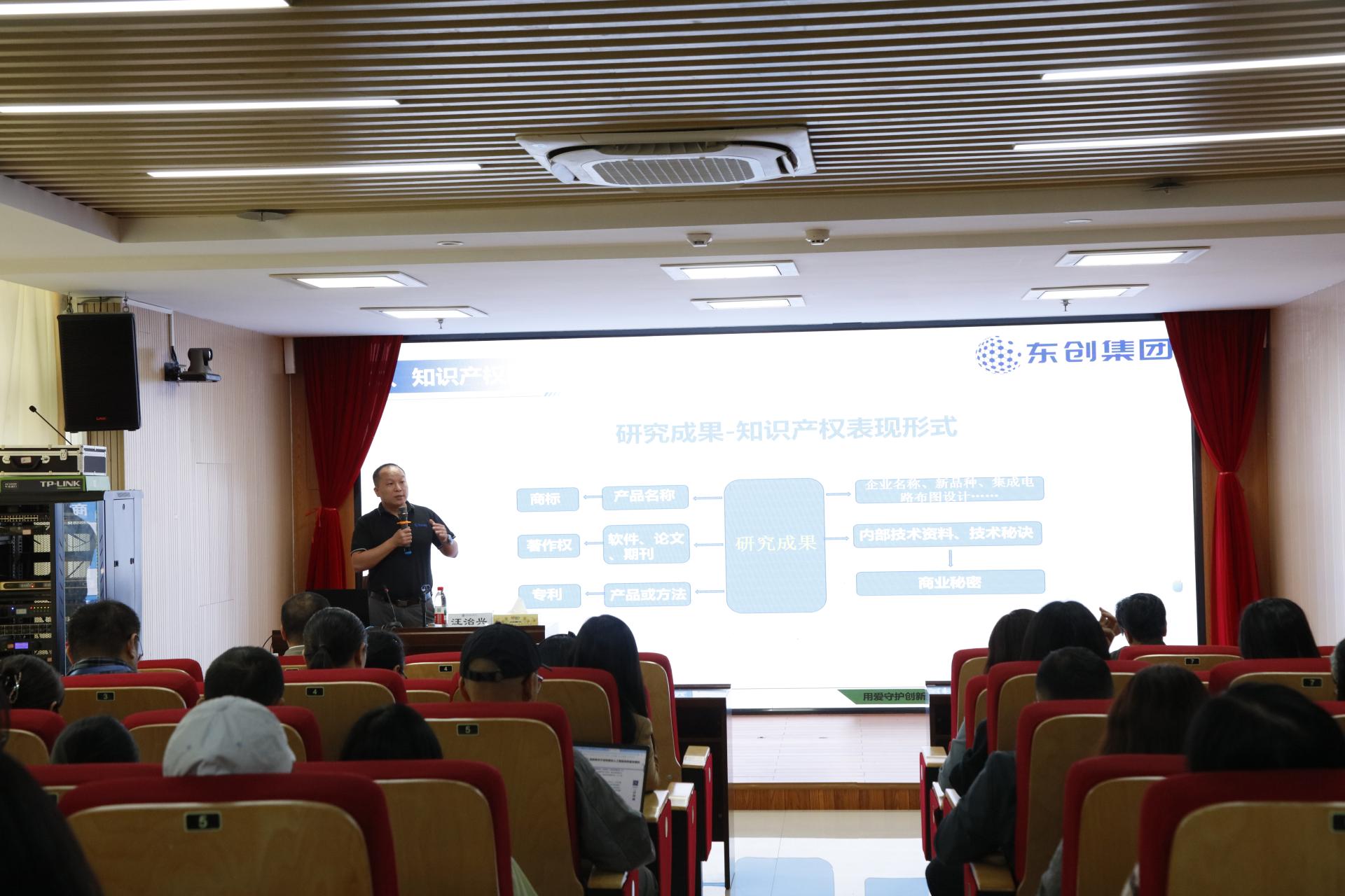 10月22日下午,为提升师生知识产权保护及成果转化意识,破解学校师生在知识产权成果转化中的实操难题,推动学校专业特色与成果转化深度融合,学校邀请了广西东创同心投资集团有限公司党支部书记、董事长汪治兴来校开展“知识产权成果挖掘及转化路径分析”专题讲座。参加此次讲座的师生代表约100人,学校副校长陆纯梅出席本次讲座并讲话。