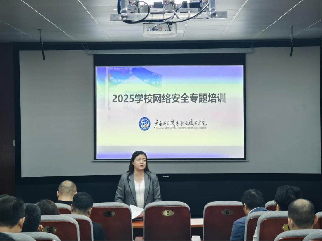 11月14日下午,我校在大学路校区举办2025年网络安全专题培训会。本次培训旨在深入学习贯彻习近平总书记关于网络强国的重要思想,全面落实《中华人民共和国网络安全法》《中华人民共和国数据安全法》《中华人民共和国个人信息保护法》等法律法规,全面保障教育系统网络安全,提高学校网络安全工作从业人员的岗位工作能力,增强网络安全意识。校内各单位负责网络安全工作的中层领导及安全员共计63人参加了本次培训,副校长陆纯梅出席培训会并作动员讲话。