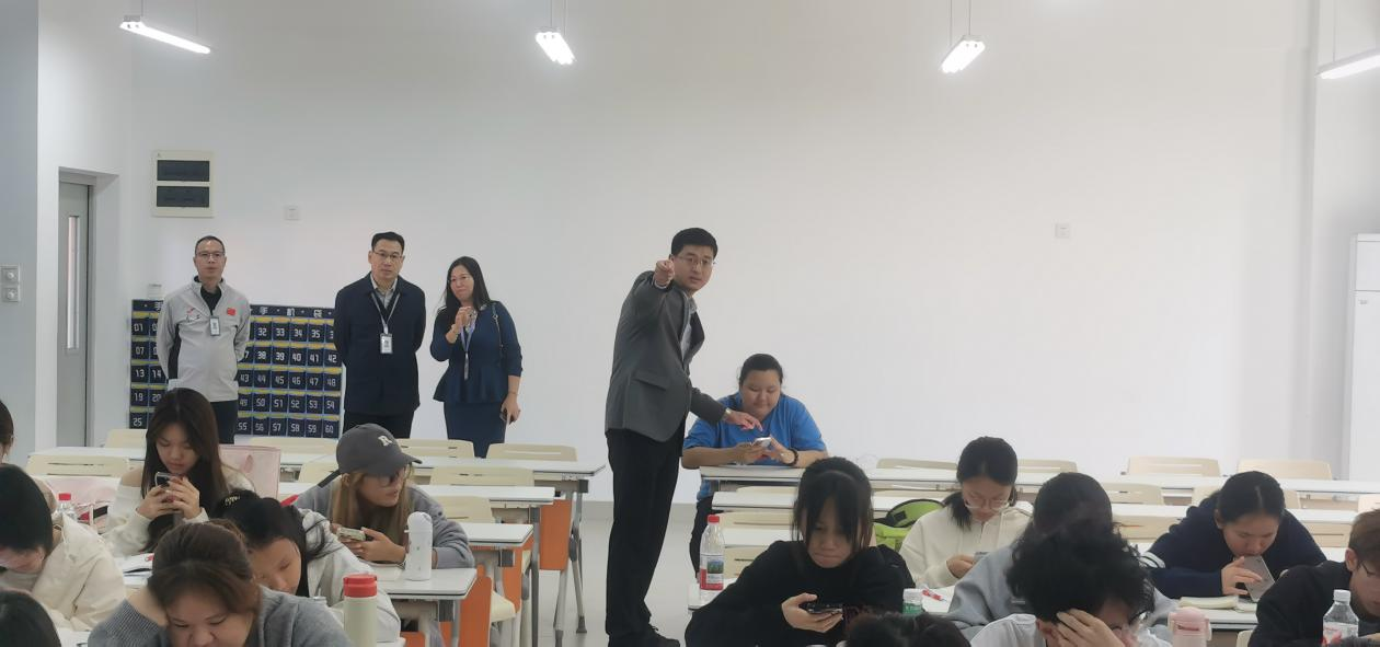 为全面了解应用外国语学院技能进阶周教学开展情况,精准把握实践教学质量,11月12日,学校党委副书记甘忠、应用外国语学院党总支书记李冬华、副院长龚菊芳一行人深入东盟校区技能进阶周课堂,为专业技能教学精准“把脉问诊”。