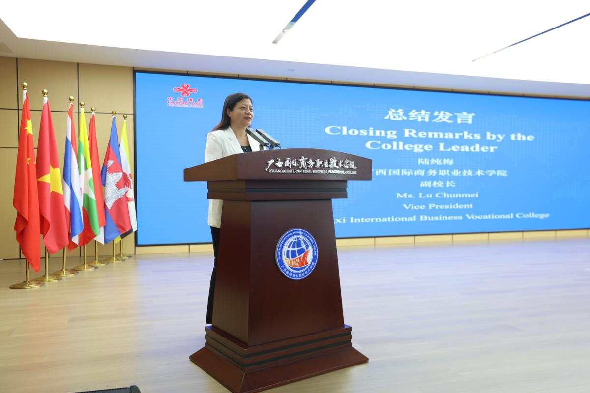 陆纯梅向全体学员表示热烈祝贺。她指出,本次研修班以商事法律交流为纽带,搭建起中国与东盟国家规则互鉴、理念融合的桥梁,有效促进了区域商事法律实践的务实合作。她强调,依托国际商务办学特色,我校将持续为商事法律研究提供平台与智力支持。她希望学员们未来与广西及中国商法机构拓展多维合作,共同推动中国—东盟商事法律合作迈向新高度,助力区域经贸往来走向更规范、高效、可持续的未来。