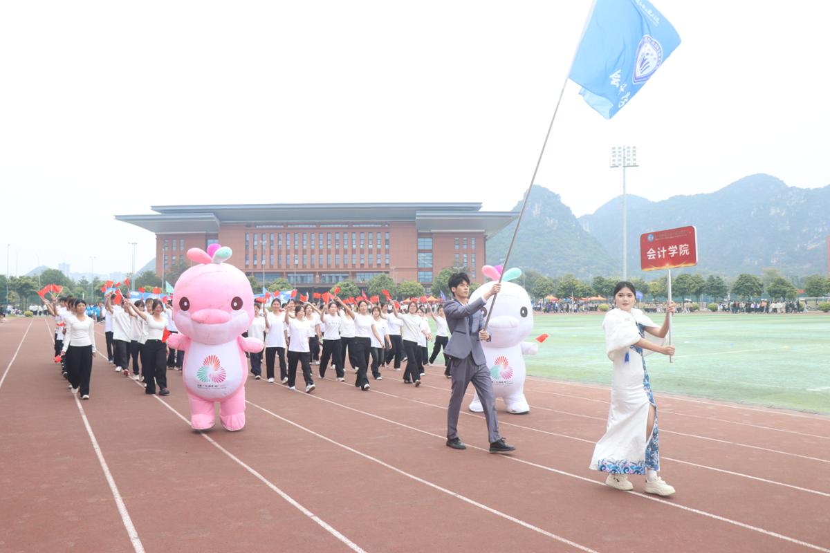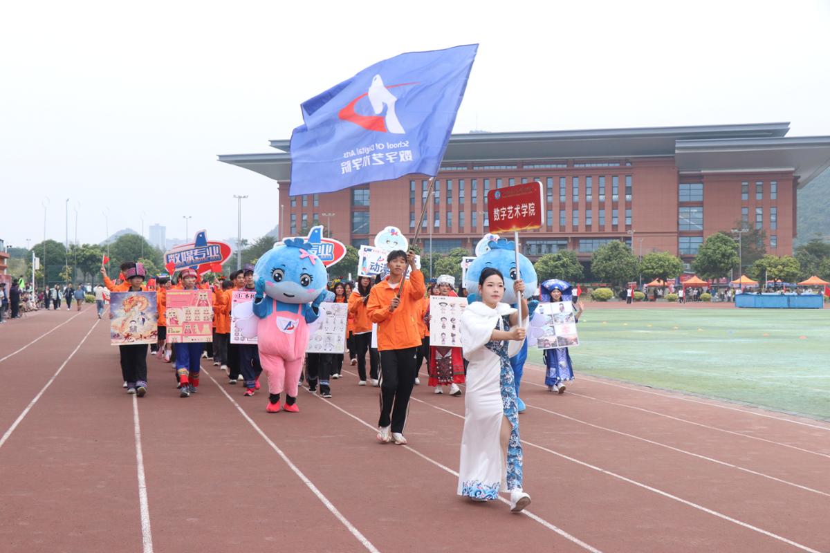 上午9时,开幕式正式拉开帷幕。伴随着激昂的《运动员进行曲》,国旗护卫队迈着铿锵有力的步伐率先入场,鲜艳的五星红旗迎风招展,熠熠生辉。随后,国旗队、校旗队、红旗队及裁判员代表队、各二级学院代表队、教职工代表队依次有序入场,他们或身着特色服饰,或手持创意道具,展现着各自的风采与活力,赢得了现场观众雷鸣般的掌声与喝彩。