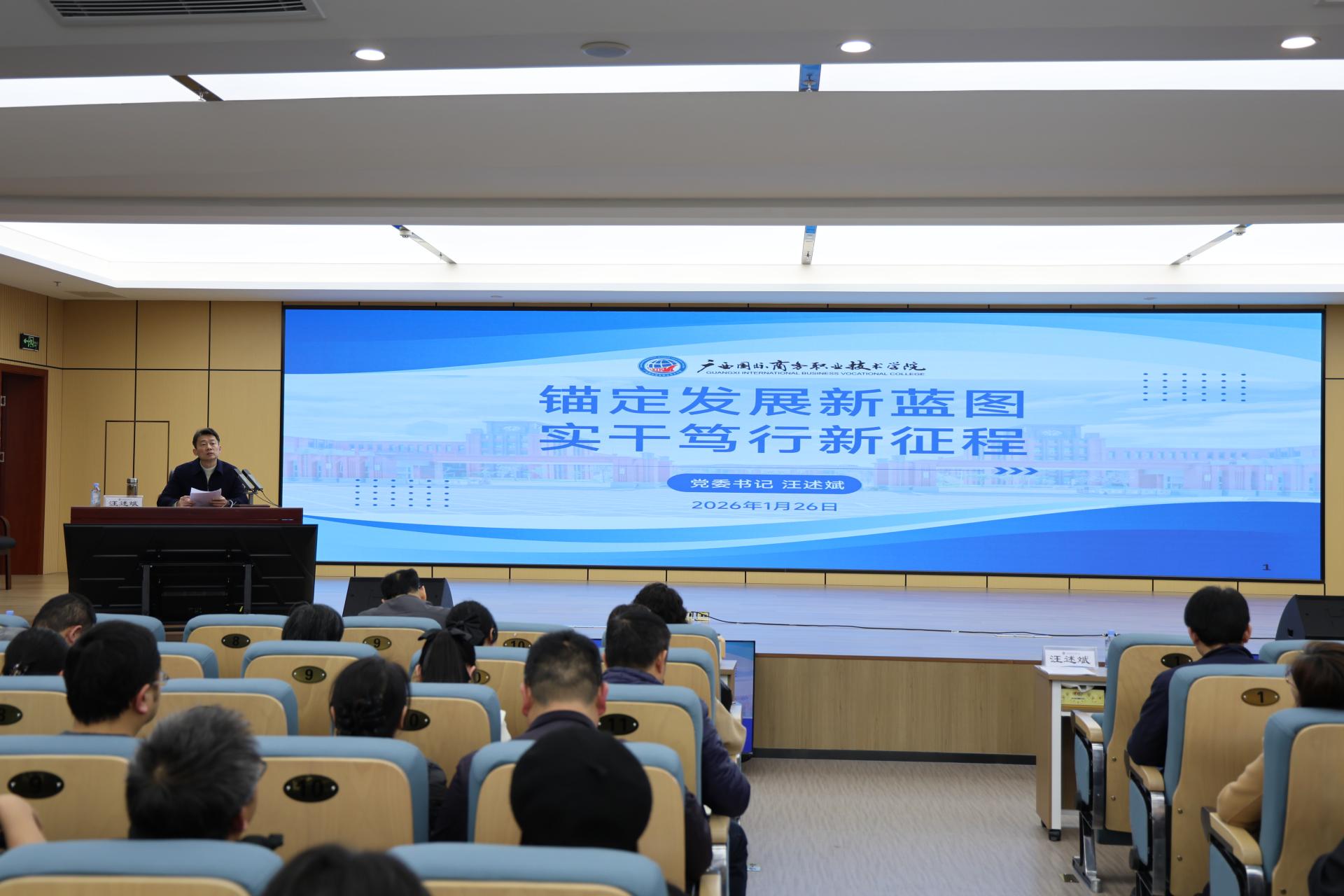 为深入贯彻落实党的二十届四中全会精神和2026年全国教育工作会议精神,进一步统一思想、凝聚共识,科学谋划学校“十五五”发展蓝图,推动学校各项事业高质量发展,我校于2026年1月24日至26日成功举办了2026年干部培训暨专题研讨活动。全体学校领导、中层干部、三层机构干部、副高以上职称人员、教研室主任和专业带头人、国商菁才”培养计划和辅导员训练营导师和学员等近四百人参加培训。