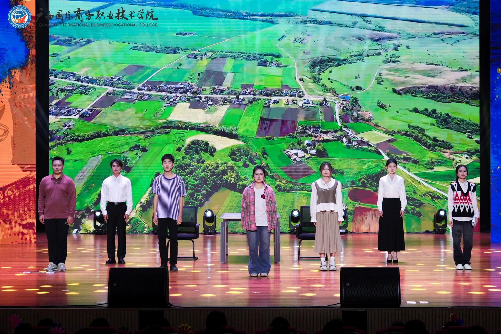 中篇《商聚八桂‧华章正盛》立足广西地域特色,以多元艺术形式诠释商科教育与八桂文化的深度融合。情景剧《桂子飘香》生动演绎学子从青涩到卓越的成长蜕变,彰显办学质量提升与产教融合成果。街舞《炫舞青春》以创新编排释放年轻一代的创造力。航空礼仪操《乘梦而行‧礼赞青春》通过标准化仪态与场景化演绎,精准展现航空服务等特色专业的职业素养与行业风范。舞蹈《象山水月‧采薇情长》以山水意象与民族风情,诠释广西商贸与文化的共生共荣。此外,北海校友代表倾情献演舞蹈《强国有我》,以刚劲有力的舞姿抒发热血赤忱,奏响新时代商科人的强国强音。最令人动容的《跨越时空的对话》环节,1965级校友代表踏上舞台,2025级新生代表手捧鲜花庄重献礼。掌声雷动间,既致敬前辈的奉献,亦期许青年接续奋斗,以青春传承商道薪火。