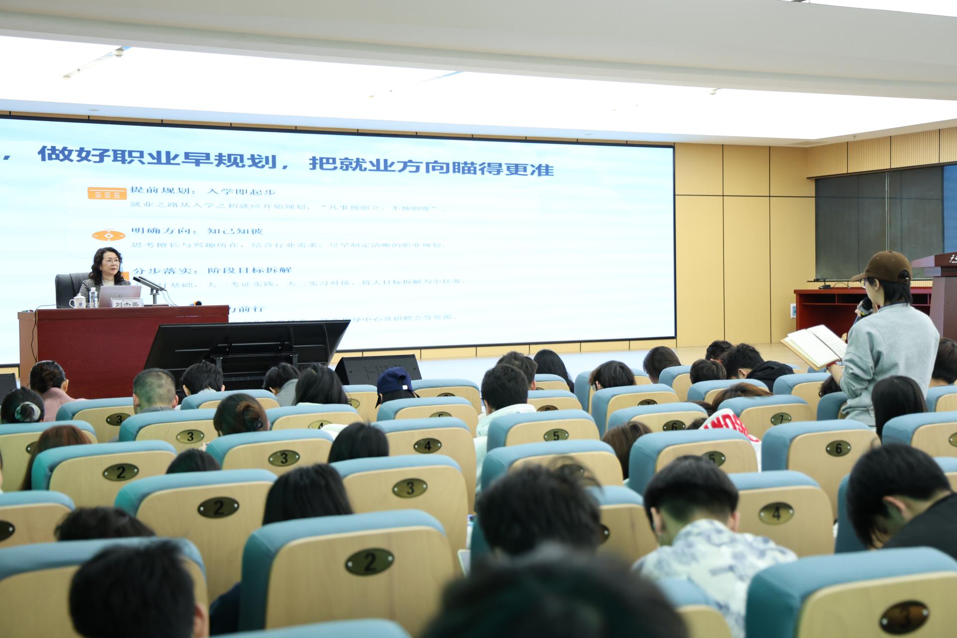 刘杰英在大学路校区主会场为学生讲授“开学第一课”