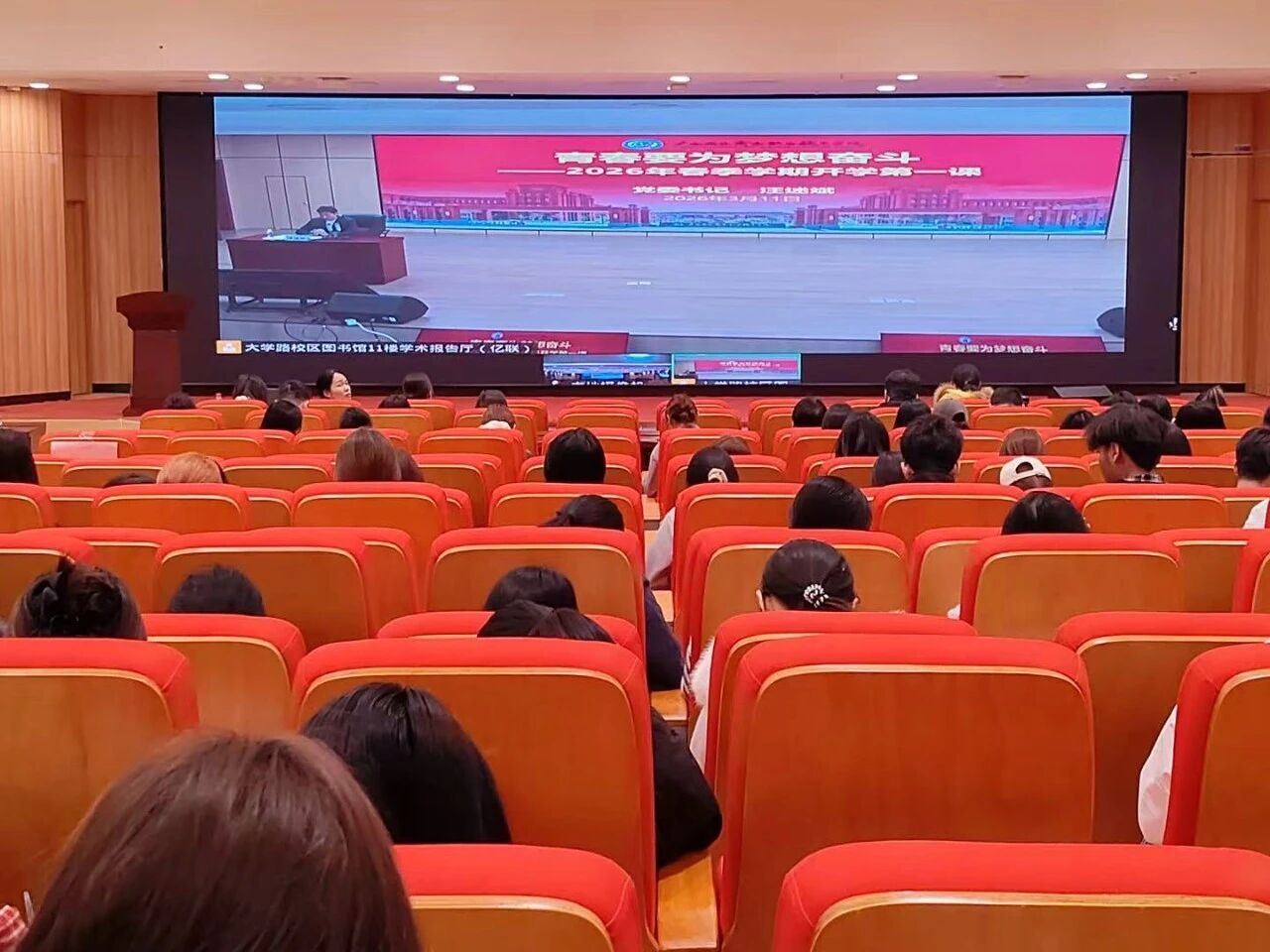 此次“开学第一课”,是我校落实立德树人根本任务、创新“大思政课”育人形式的重要举措。下一步,我校将持续以“大思政课”建设为抓手,把思政教育全方位、全过程融入人才培养各环节,引导广大青年学子坚定理想信念、勇担时代使命,以青春之我、奋斗之我,在强国建设、民族复兴的伟大征程中书写青春华章。