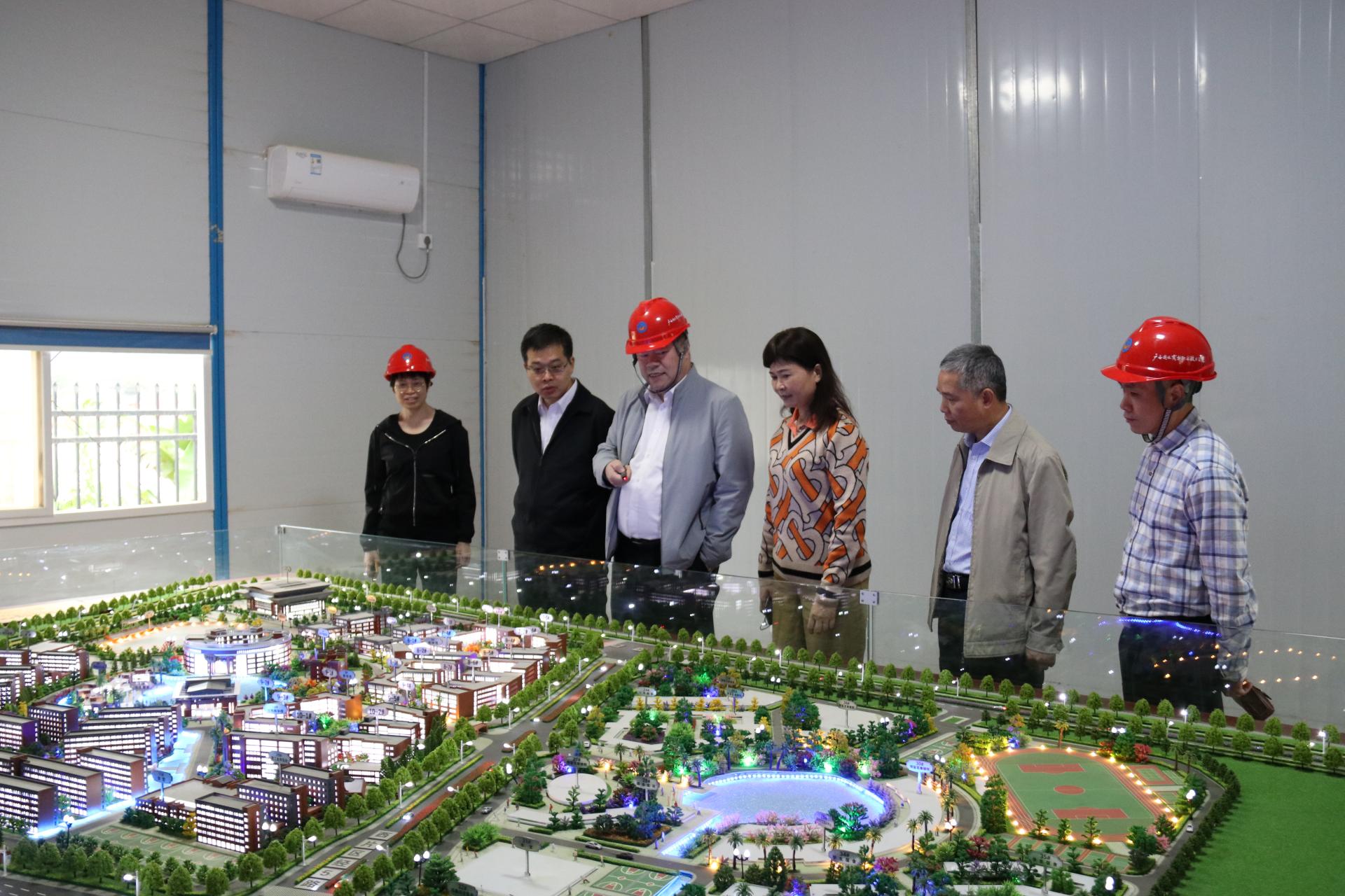 首先,调研组一行参观了我院武鸣新校区建设项目沙盘,学院党委书记谢云向黄毅副厅长详细介绍了我院武鸣新校区项目建设规划和当前项目进展情况。
