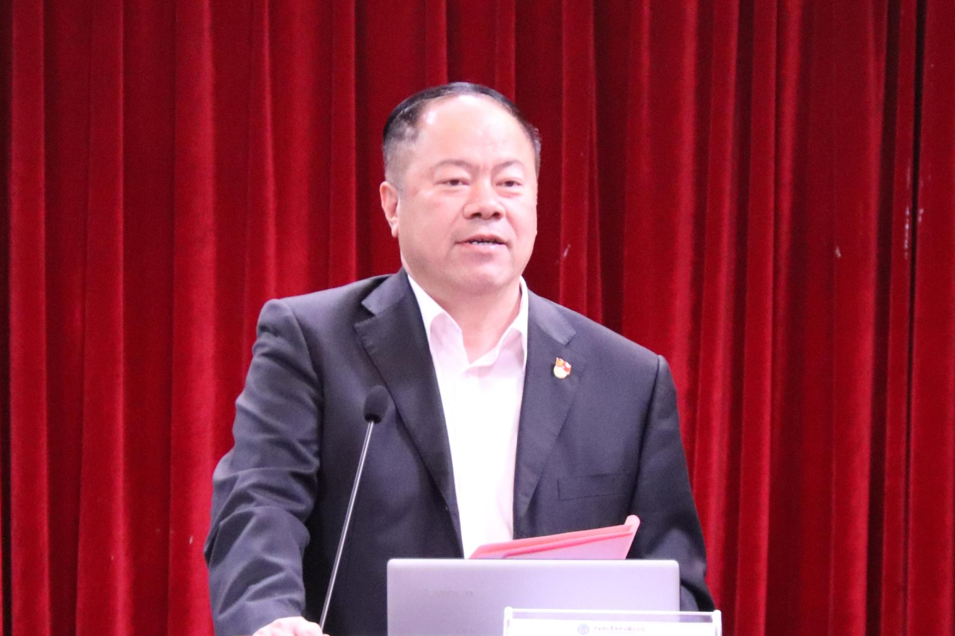 他强调,党的十九届六中全会正在召开,按照党史学习教育的安排,学校各级党组织要认真组织广大党员干部和师生深入学习宣传和贯彻党的十九届六中全会精神,系统学习党的创新理论,在学、思、践、悟上用劲发力,思想上和行动上与中央保持高度一致。学校领导班子将继续团结带领全体党员干部,努力践行“担当为要、实干为本、发展为重、奋斗为荣”理念,将学校建设发展的一个个大目标化为一项项小任务,以钉钉子的精神,一步一个脚印地把宏伟蓝图变成壮丽现实。为建设新时代中国特色社会主义壮美广西做出新的更大的贡献!