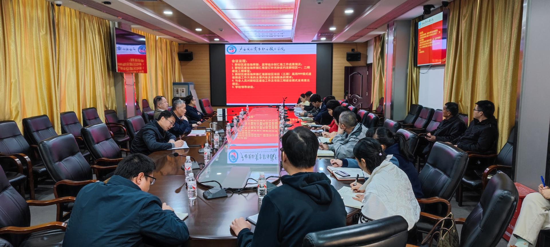 学校校长王国红对新校区建设现阶段所取得的成绩给予充分的肯定。他强调,在新校区项目(二期)建设工作中依然要保质保量,确保按期交付;部门之间要加强统筹,对设备设施的采购、安装要提前做好谋划安排;同时要学习借鉴其他院校采用PPP模式建设的成功经验,做好新校区项目(三期)的前期工作。