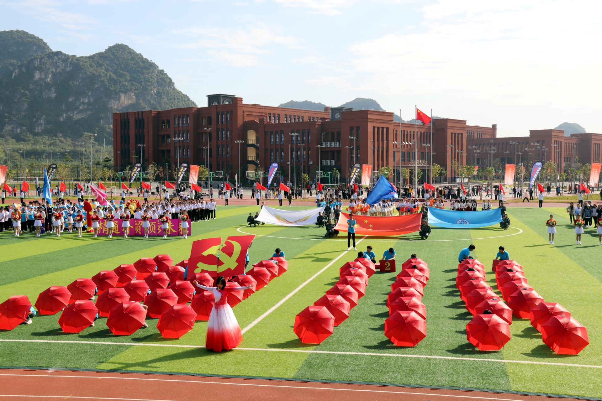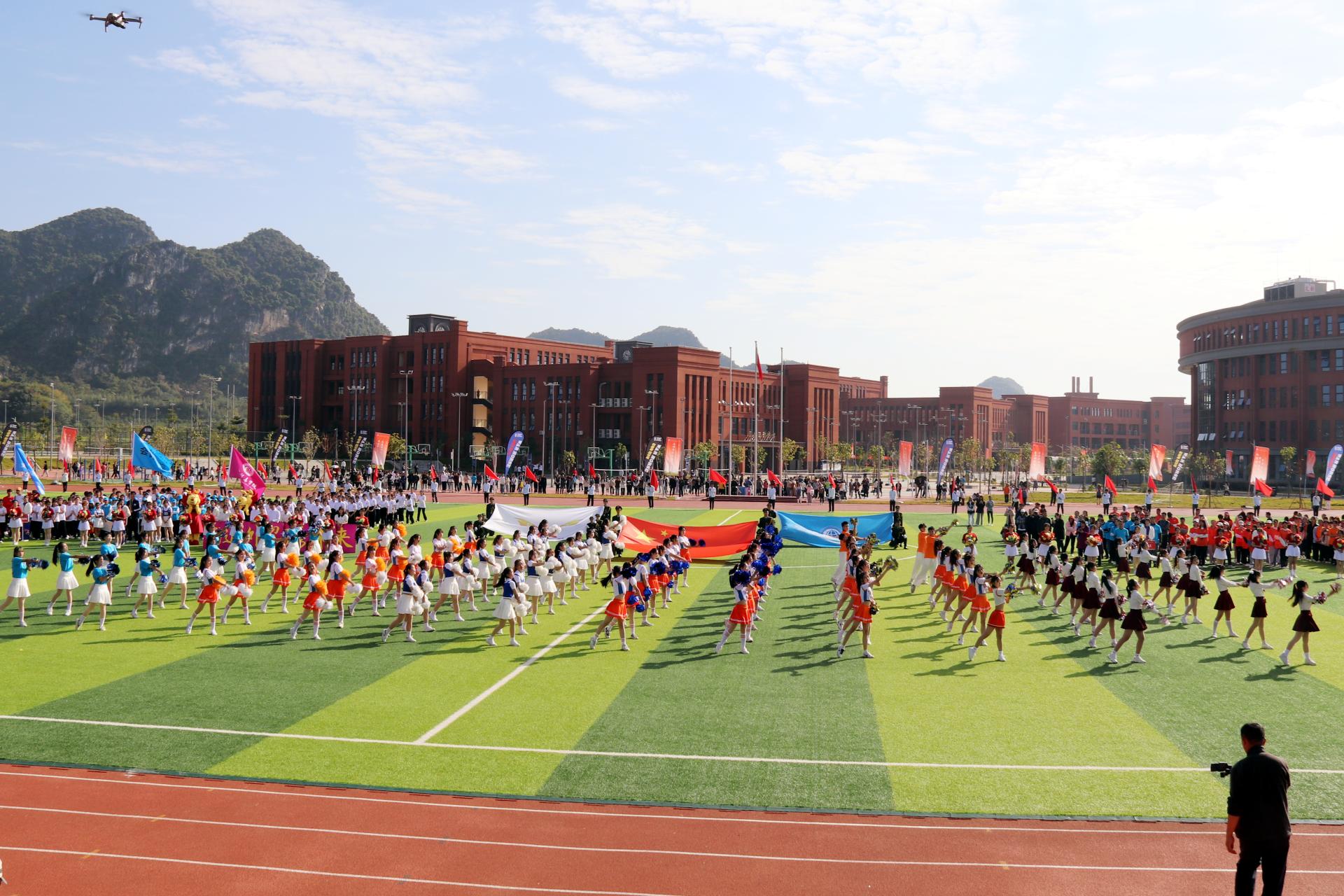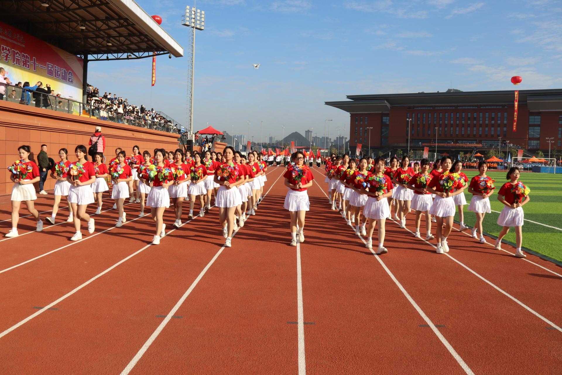 12月2日上午,我校第十一届运动会开幕式在东盟校区田径场隆重举行。学校党委书记谢云,党委副书记、校长王国红,党委副书记青增计,党委委员、副校长班克庆,党委委员、纪委书记甘忠,副校长蒋百平出席开幕式。各二级学院负责人、近7000名师生代表参加了开幕式。开幕式由班克庆主持。